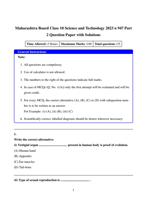 | Maharashtra Board Class 10 Science and Technology (N947) Question Paper With Solution PDF | Check Solution |