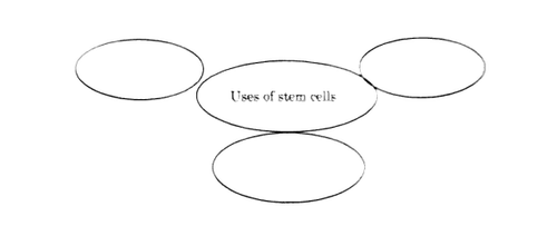 Stem cells can self-renew and differentiate into specialised cell types, which enables several key applications. Regenerative therapy uses stem cells to replace or repair damaged tissues in conditions such as myocardial infarction, spinal cord injury, and neurodegenerative diseases. Haematopoietic stem cell transplants treat blood disorders like leukemia, thalassemia, and severe aplastic anemia by replenishing healthy blood and immune cells. Tissue and organ engineering employs stem cells with scaffolds and growth factors to grow tissues or organoids for transplantation or modelling. Drug testing and research use stem-cell-derived specialised cells to evaluate drug safety and efficacy and to model human diseases in vitro, reducing reliance on animal models. Quick Tip: When filling diagrams, pick the most distinct, high-impact applications: therapy, blood disorders, engineering, and research/testing.