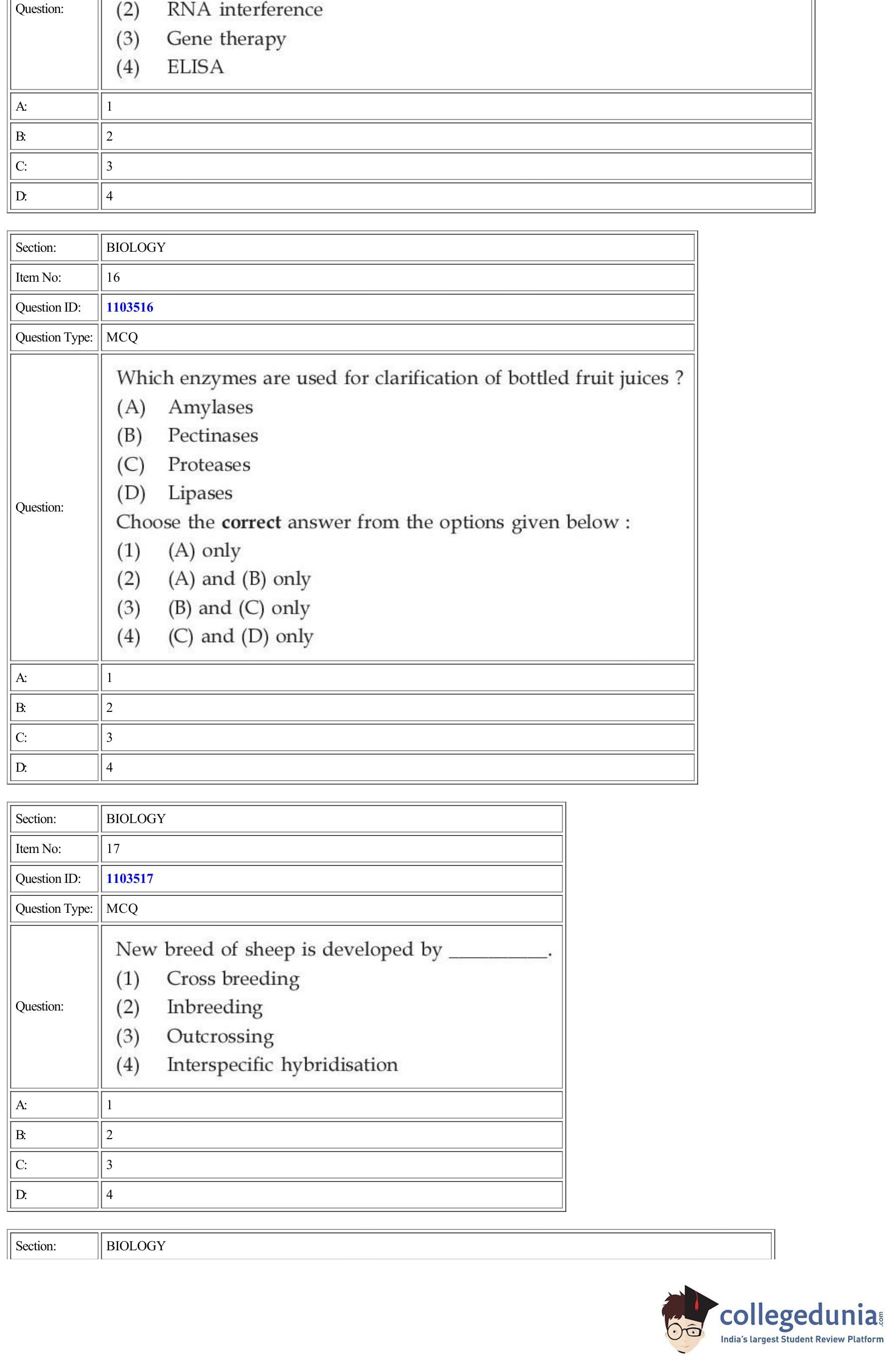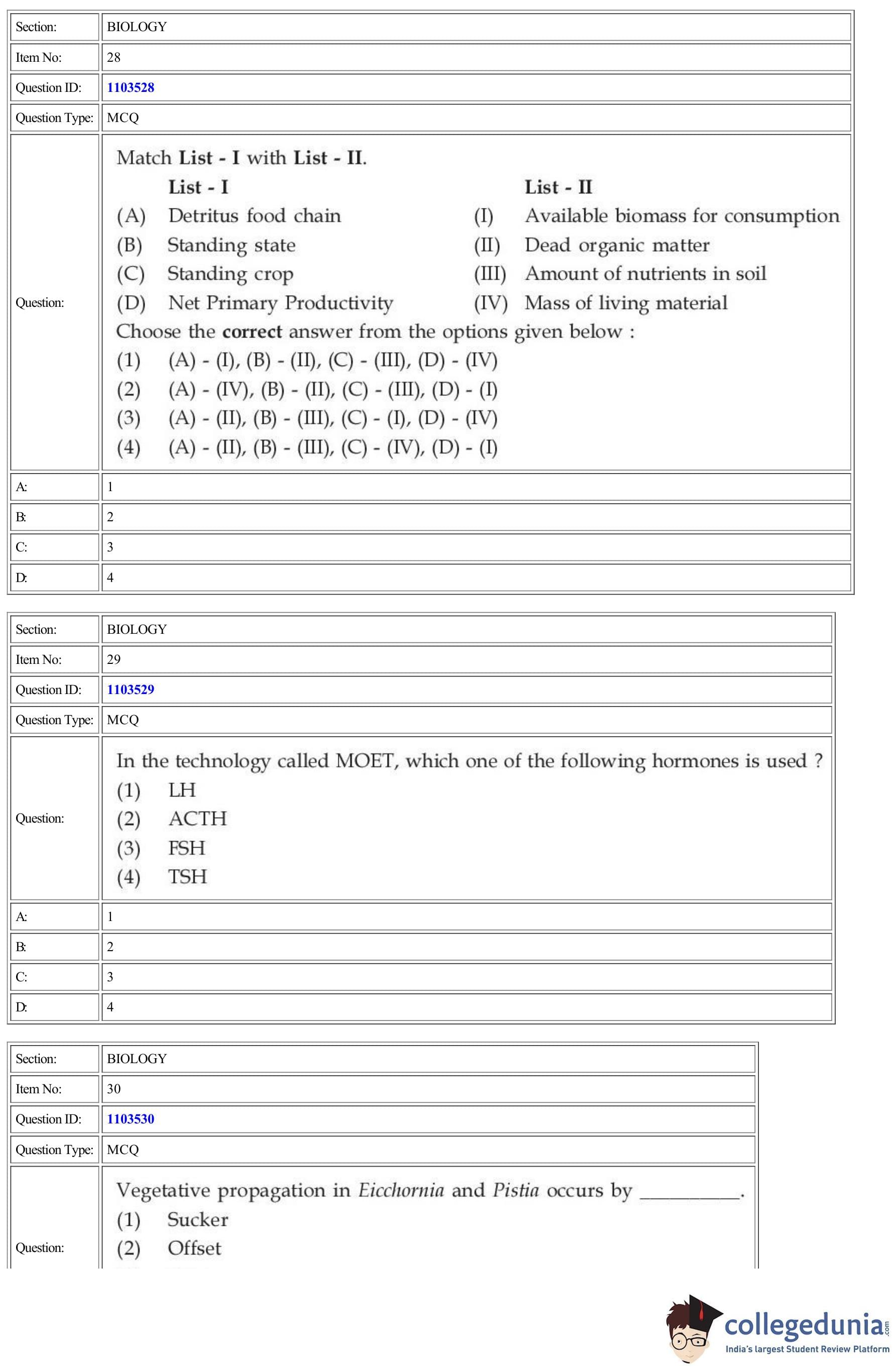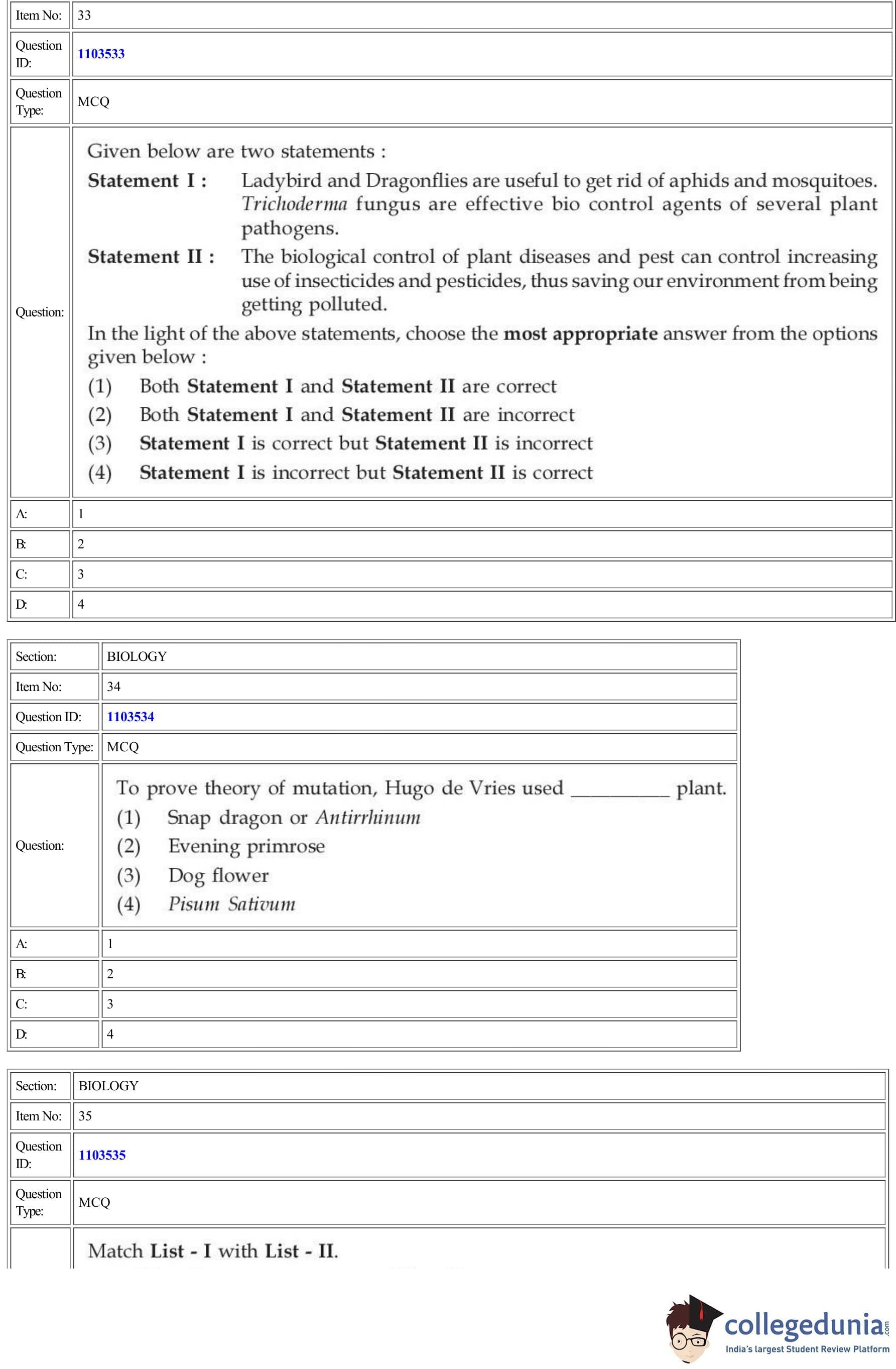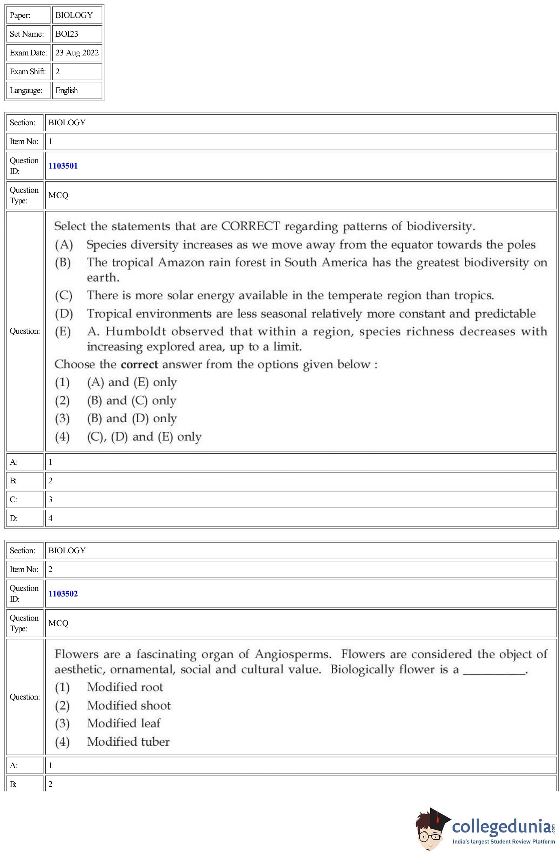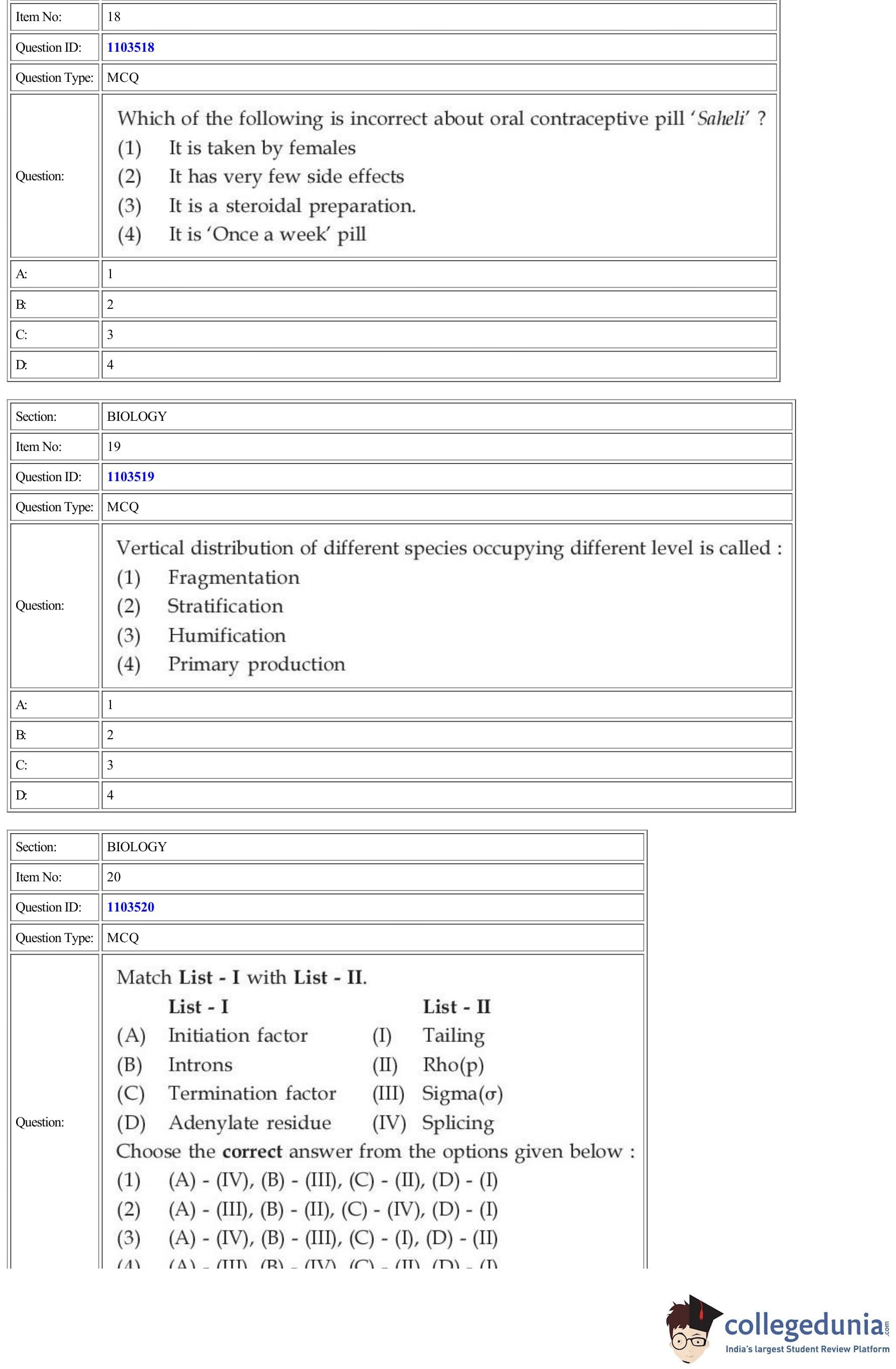 | CUET Biology Question Paper PDF | CUET Biology Answer Key PDF | CUET Biology Solutions PDF |