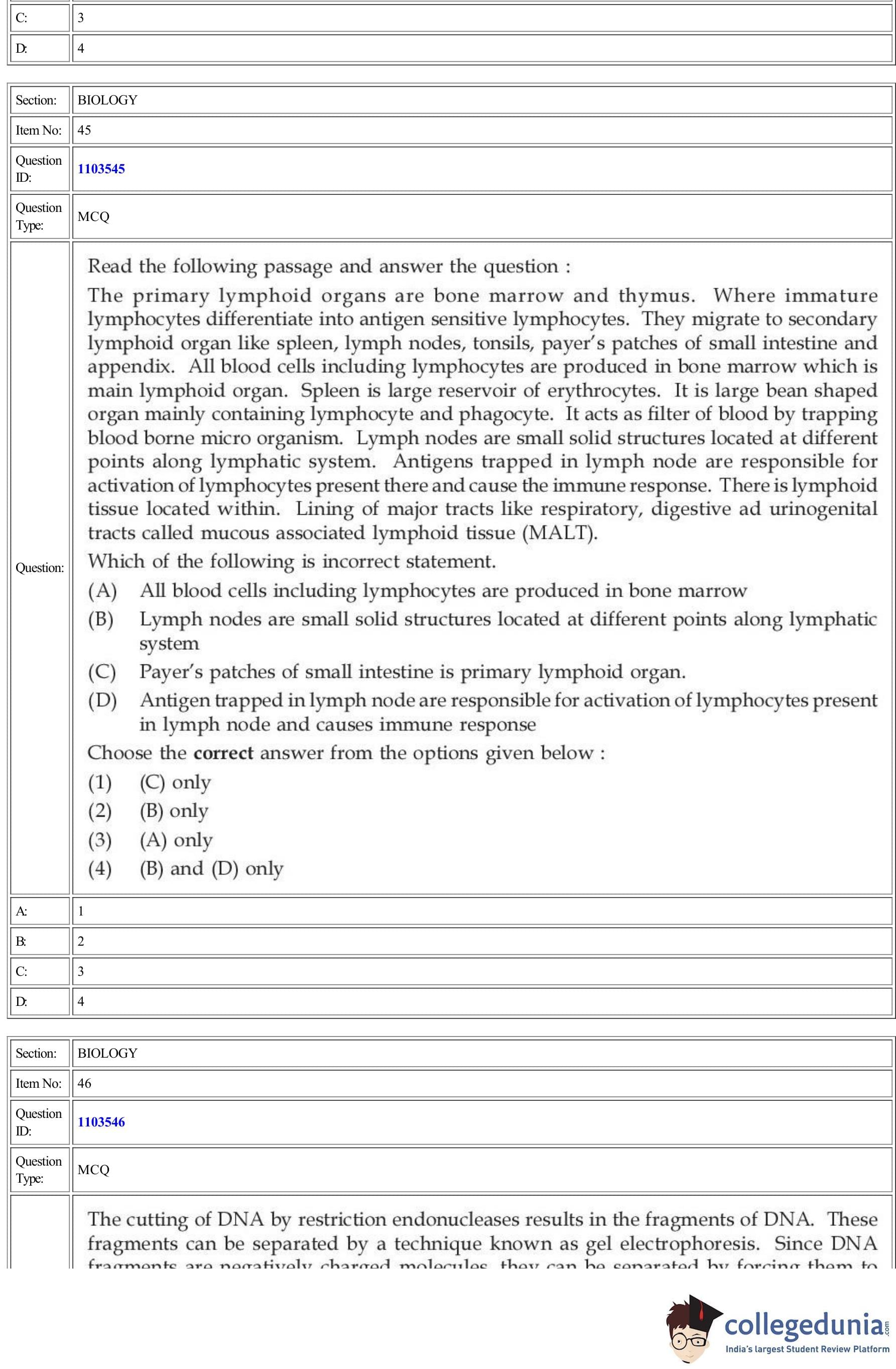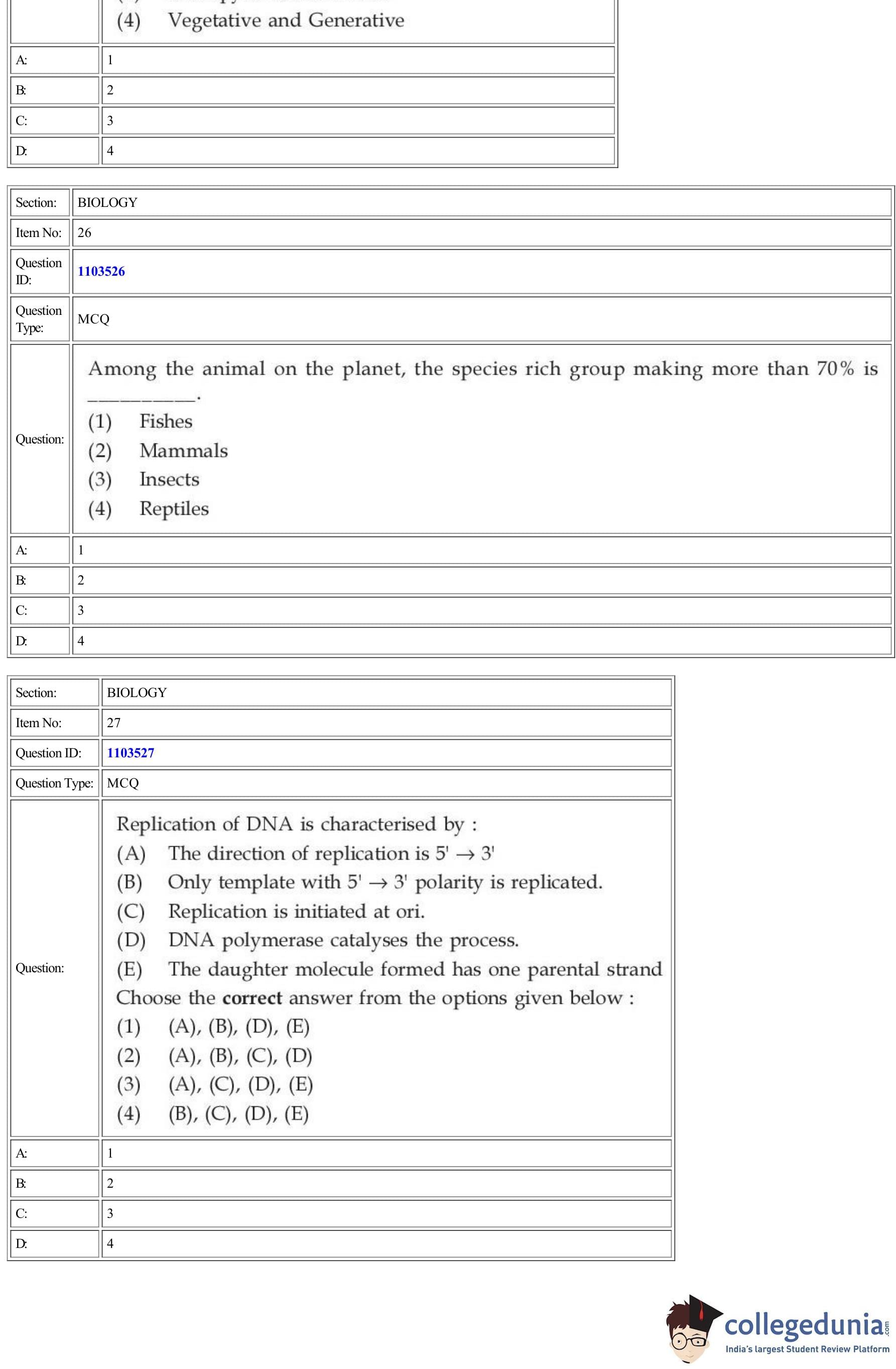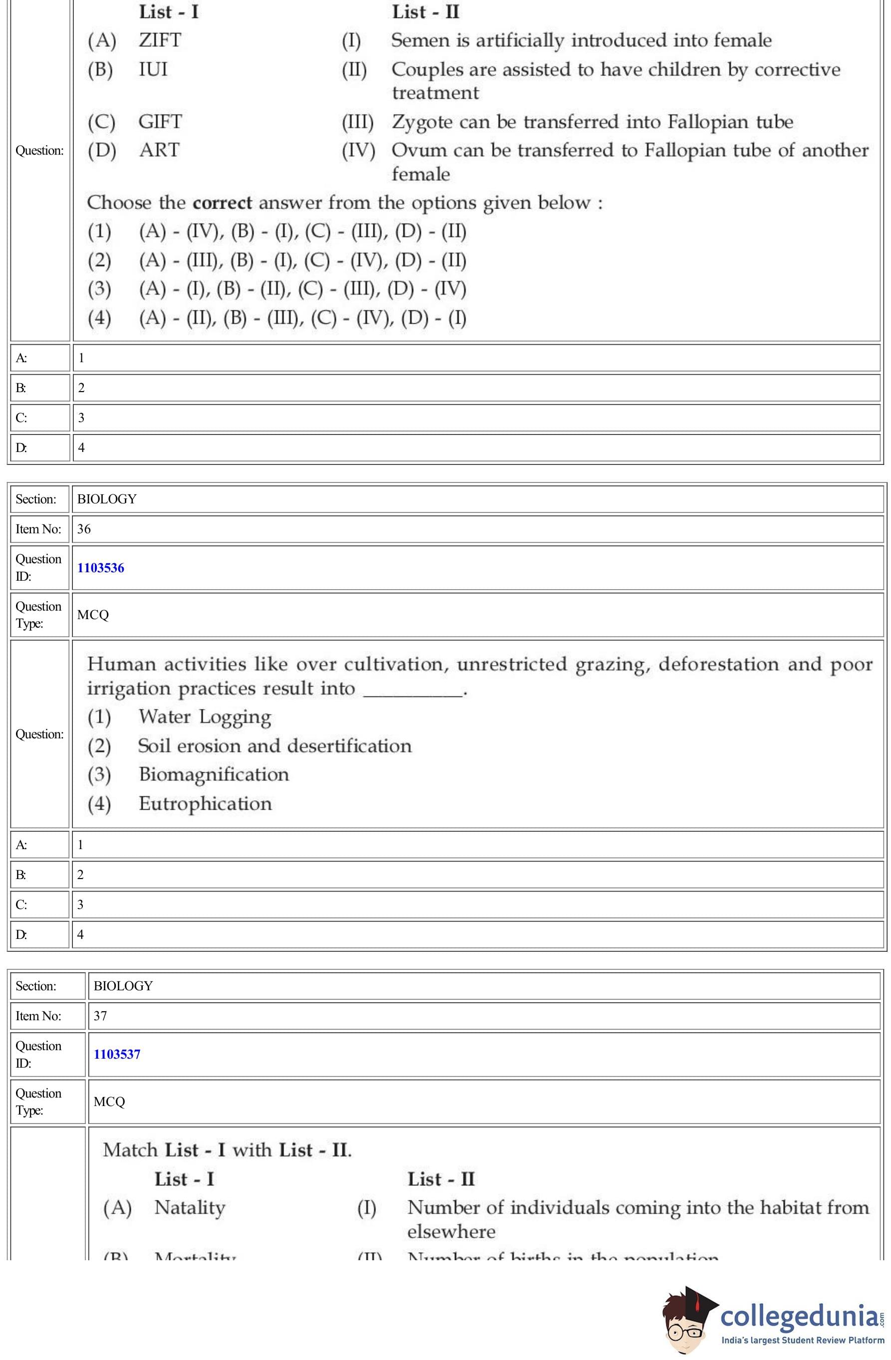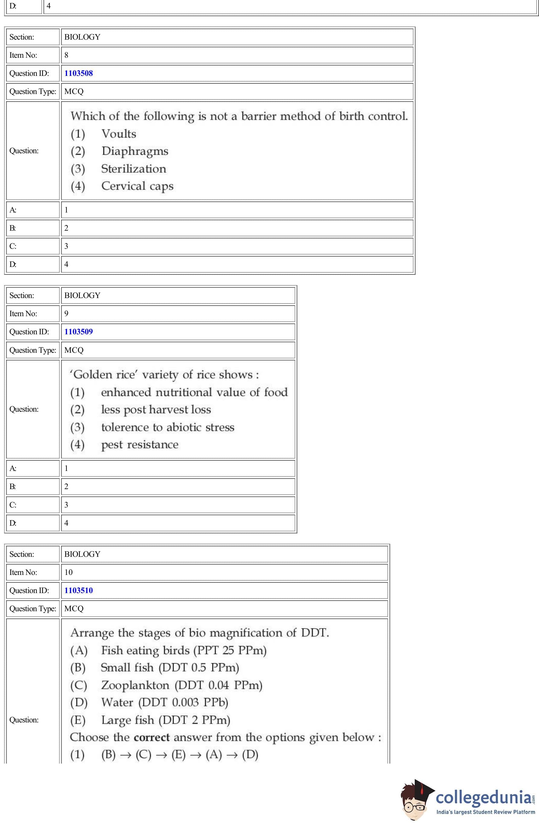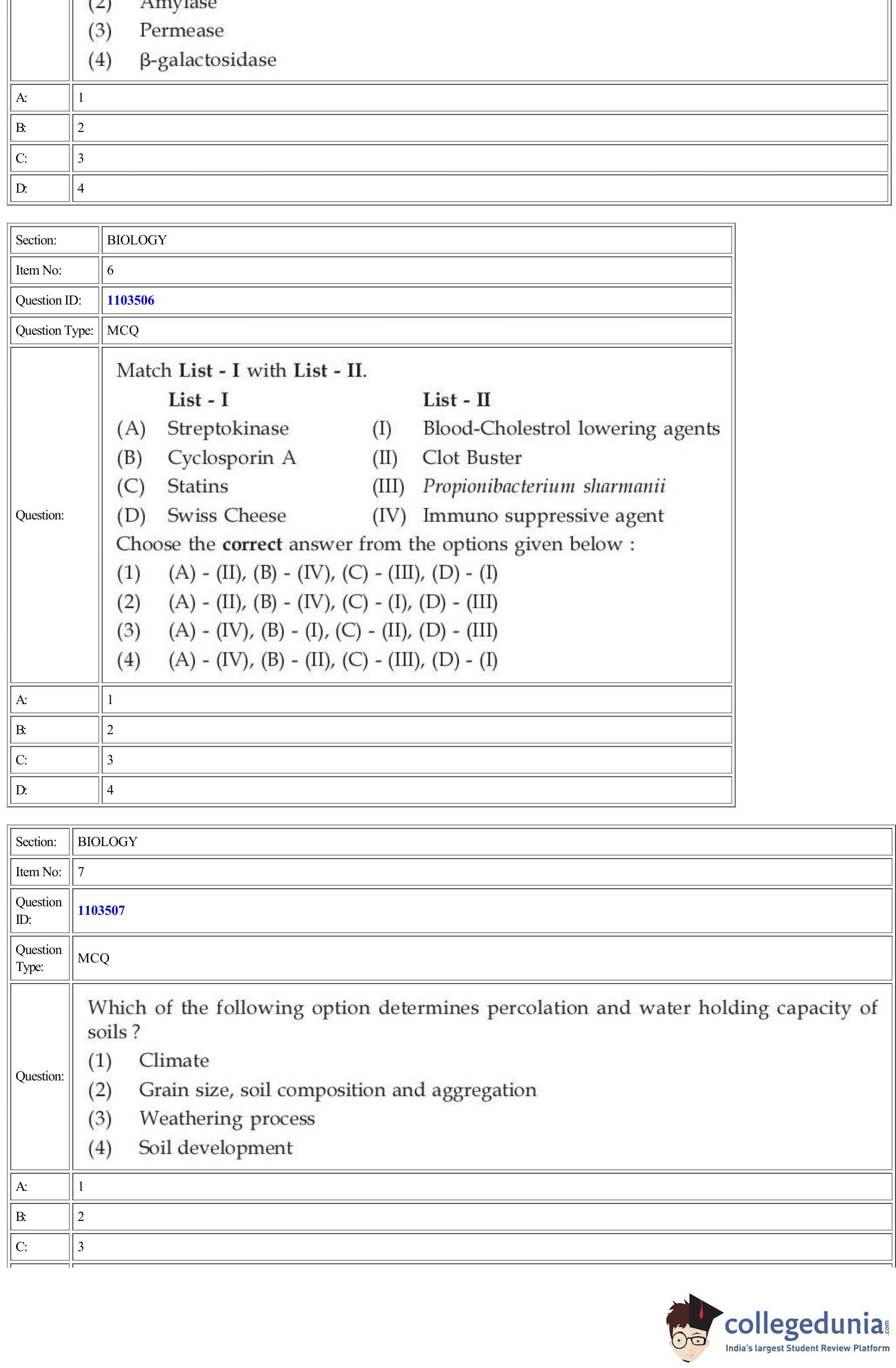 | CUET Biology Question Paper PDF | CUET Biology Answer Key PDF | CUET Biology Solutions PDF |