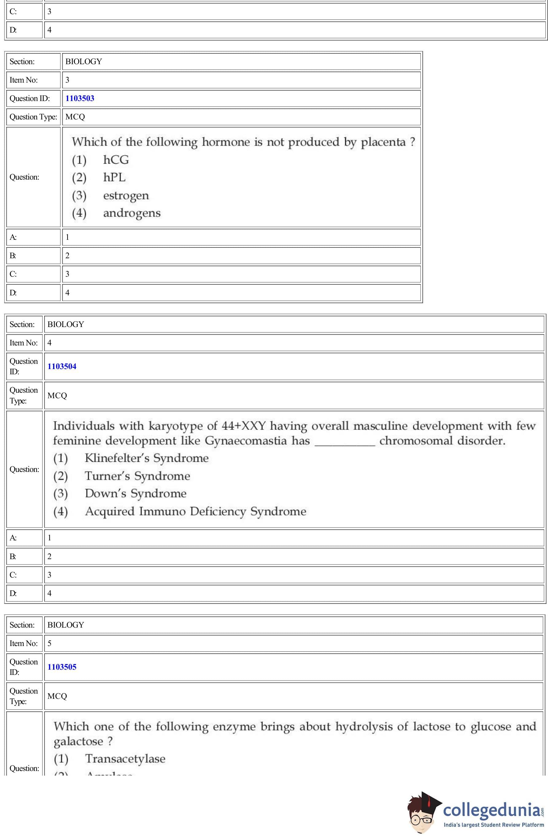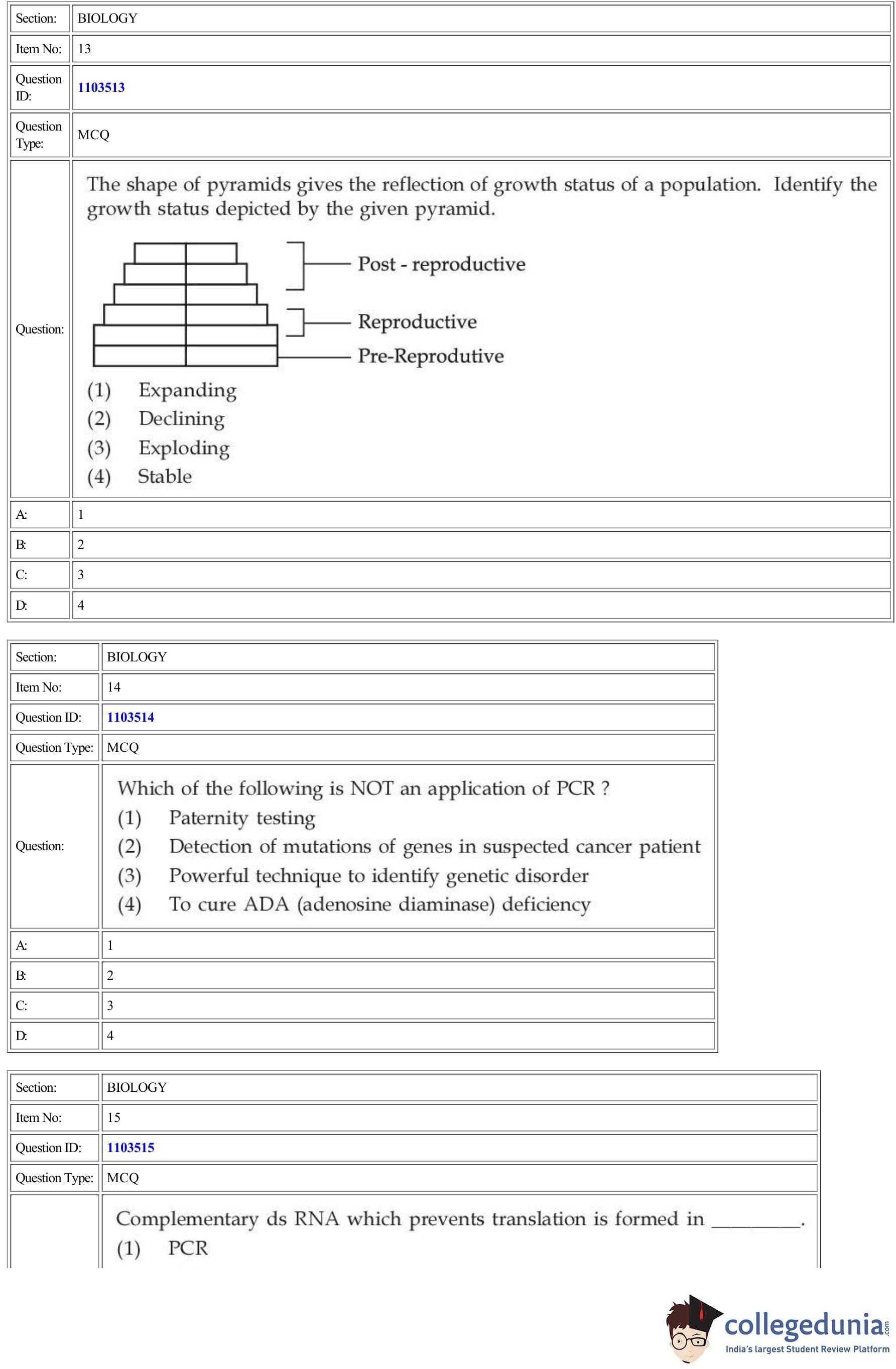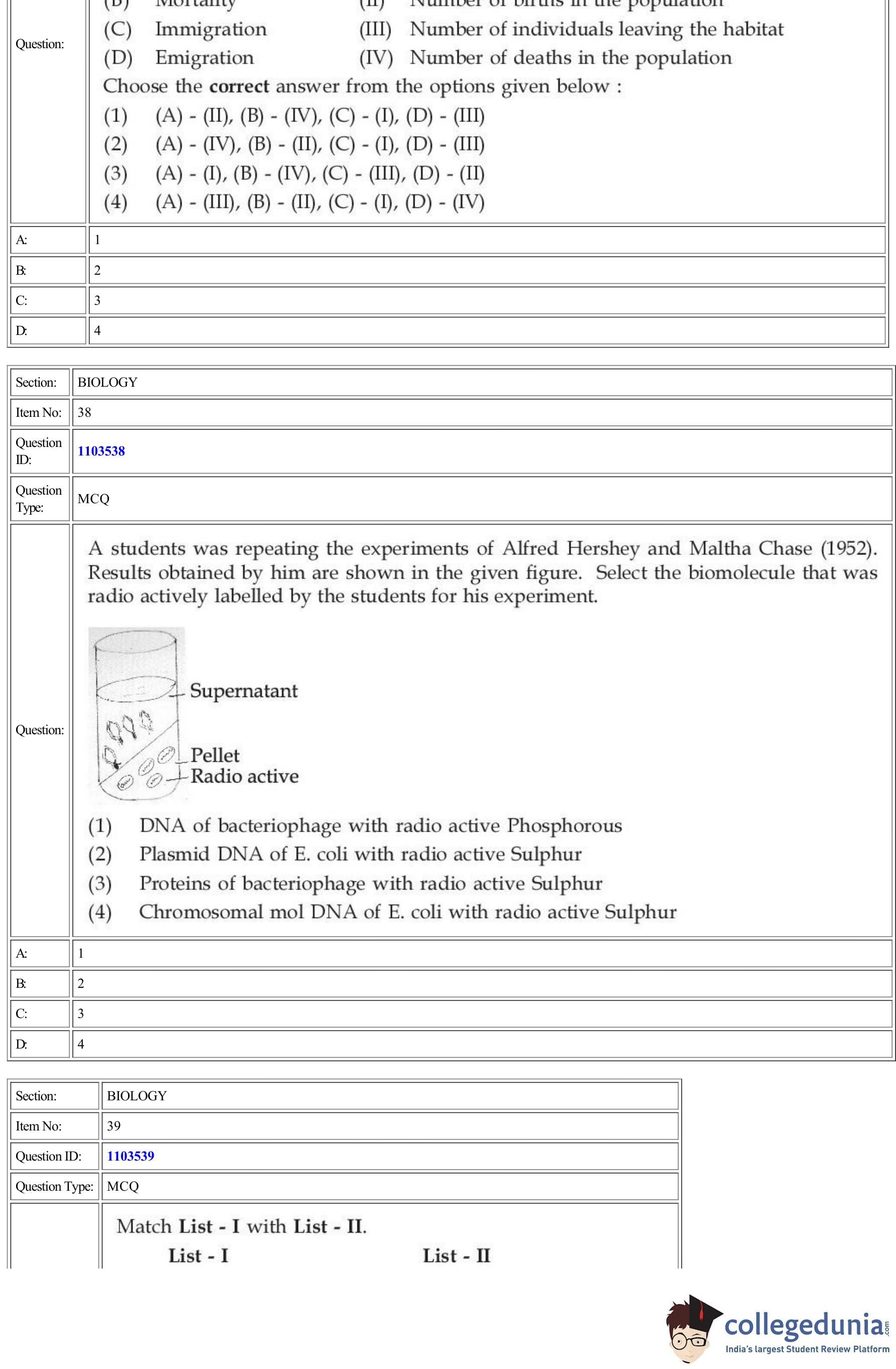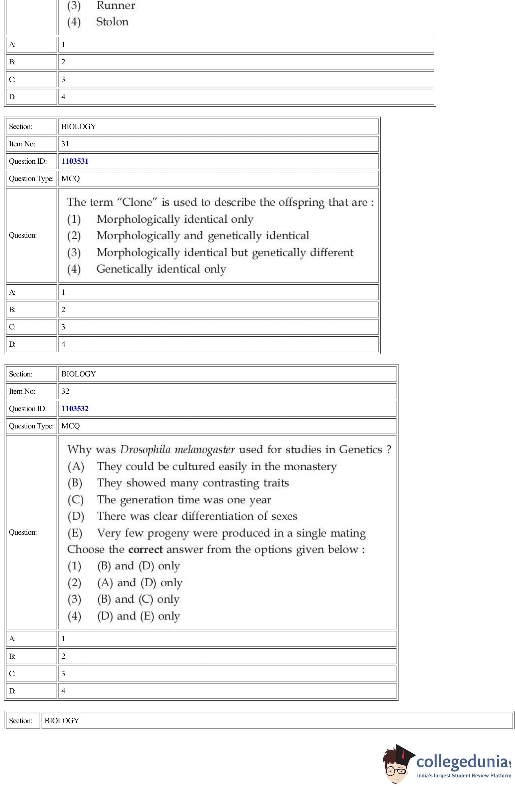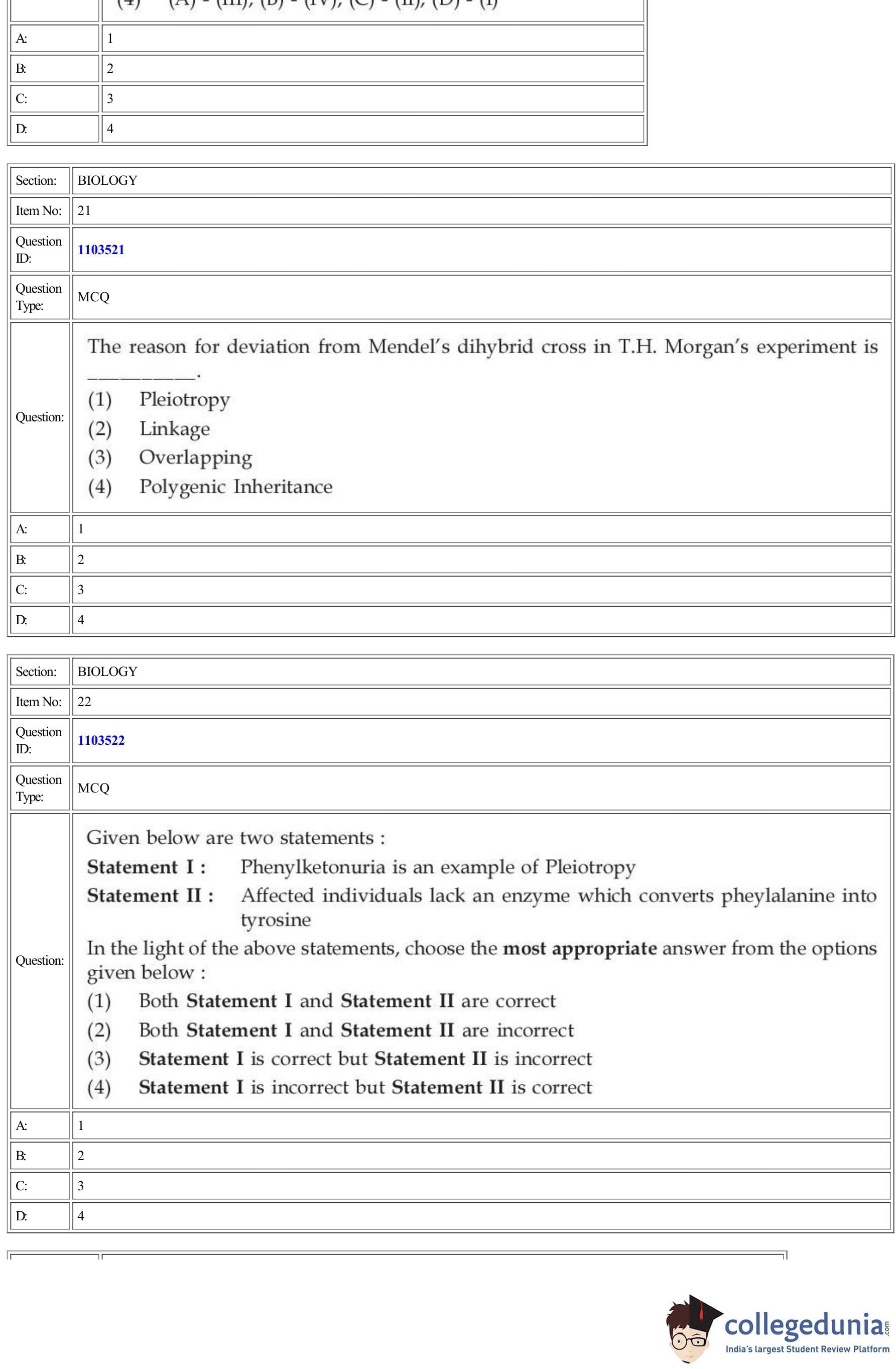 | CUET Biology Question Paper PDF | CUET Biology Answer Key PDF | CUET Biology Solutions PDF |