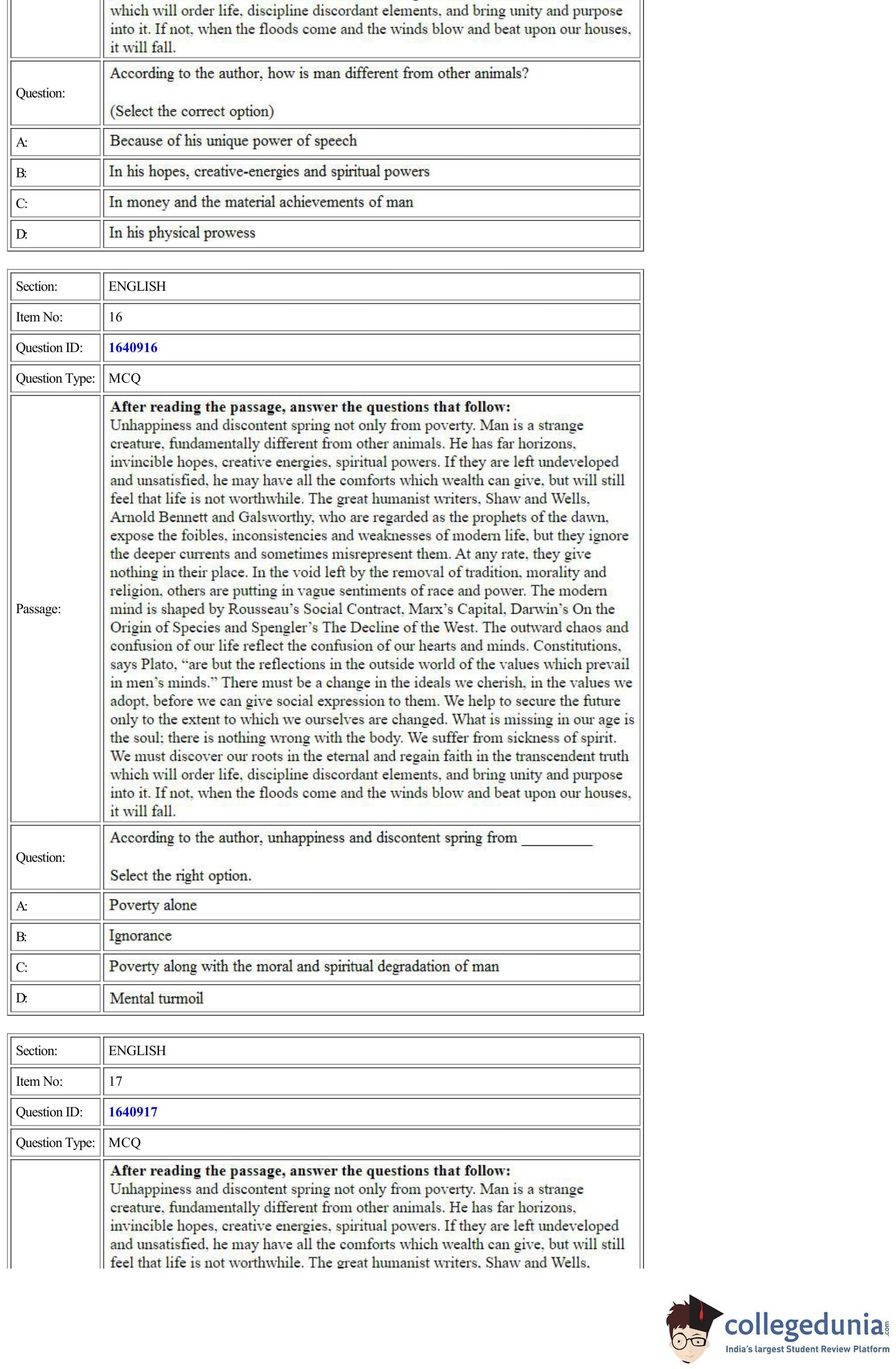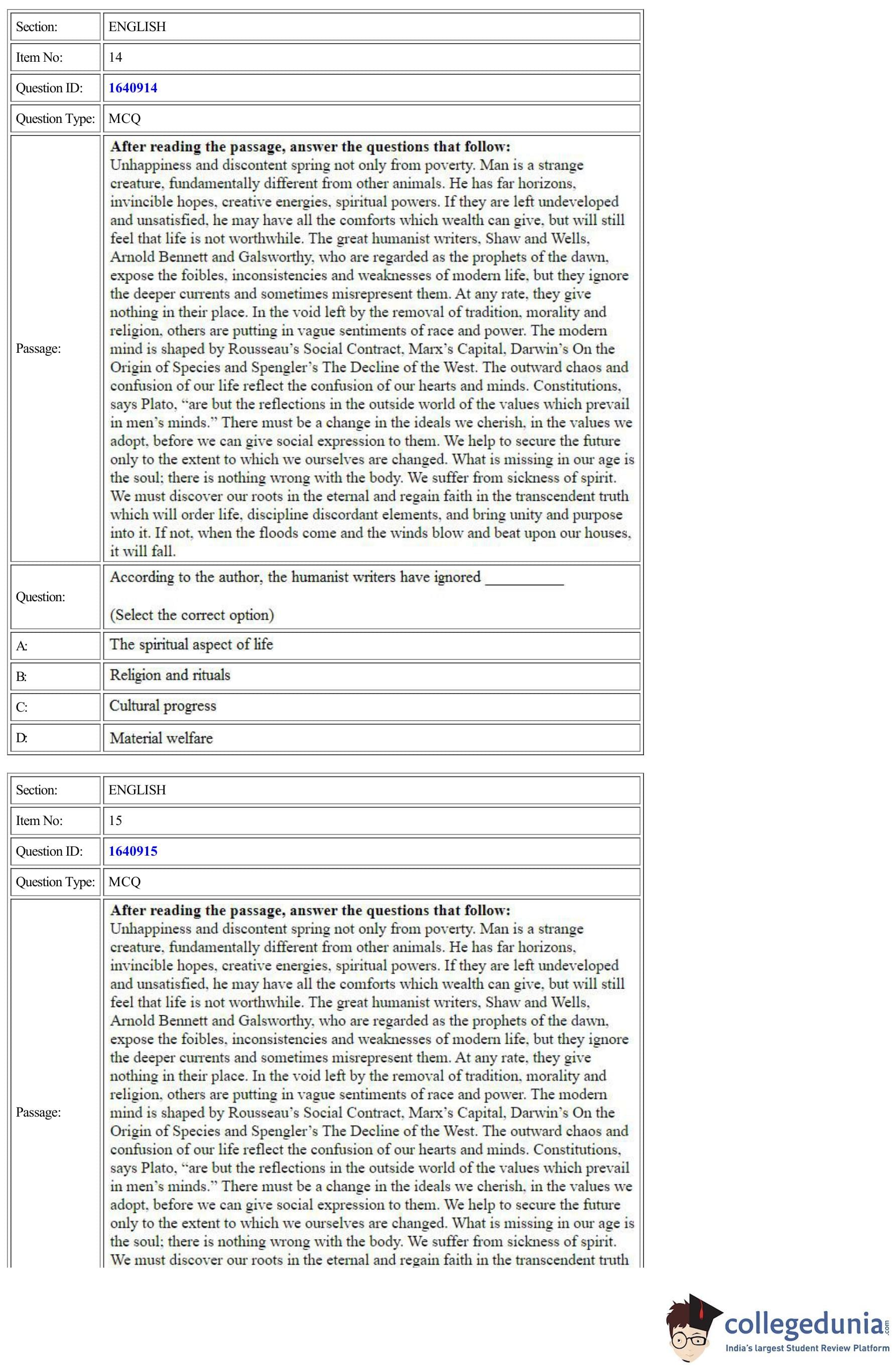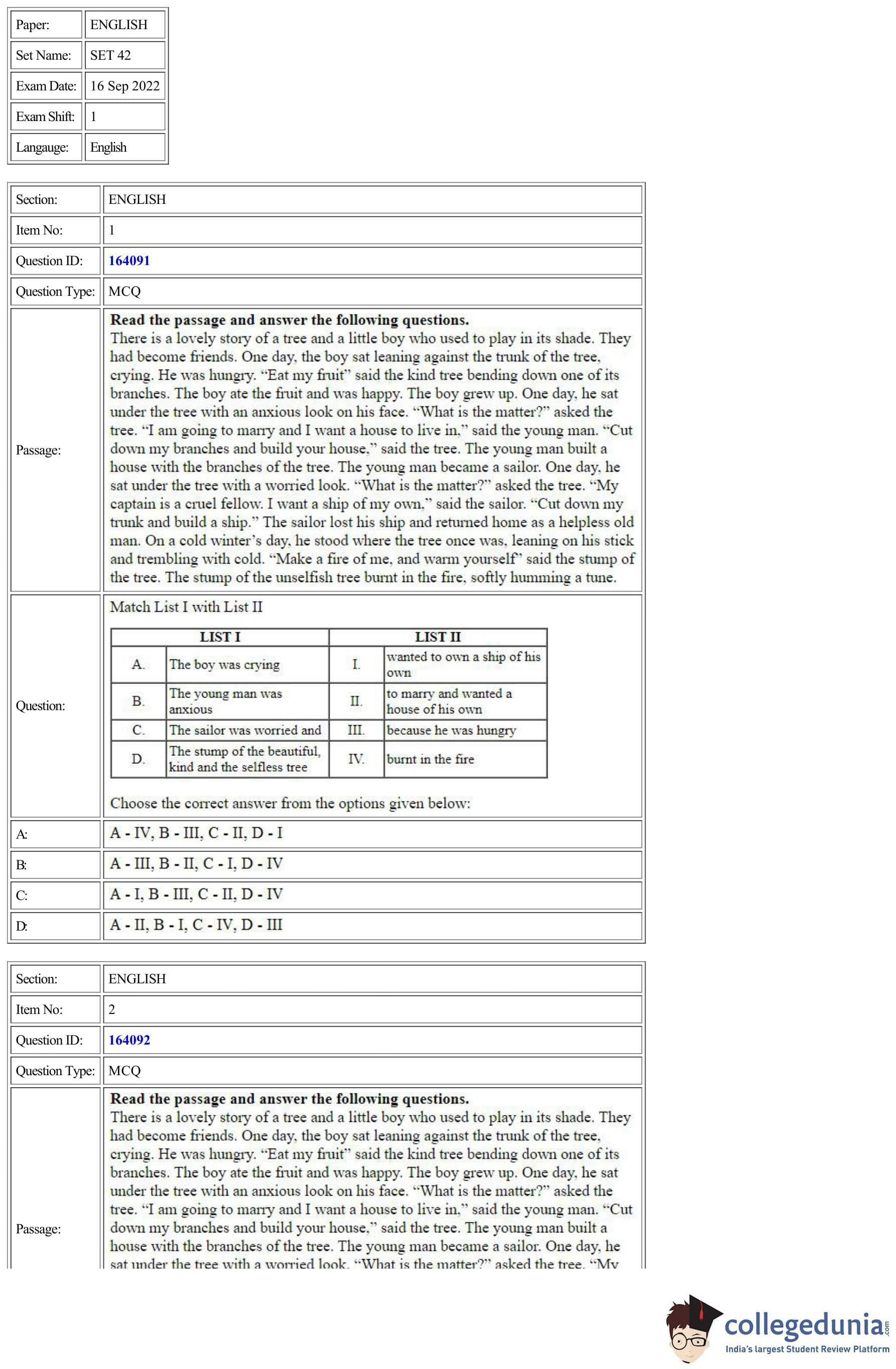 CUET English Question Paper 2022 is available for download. CUET 2022 English paper was conducted by National Testing Agency (NTA) on September 16, 2022 in Shift 1. The question paper comprised a total of 50 questions.