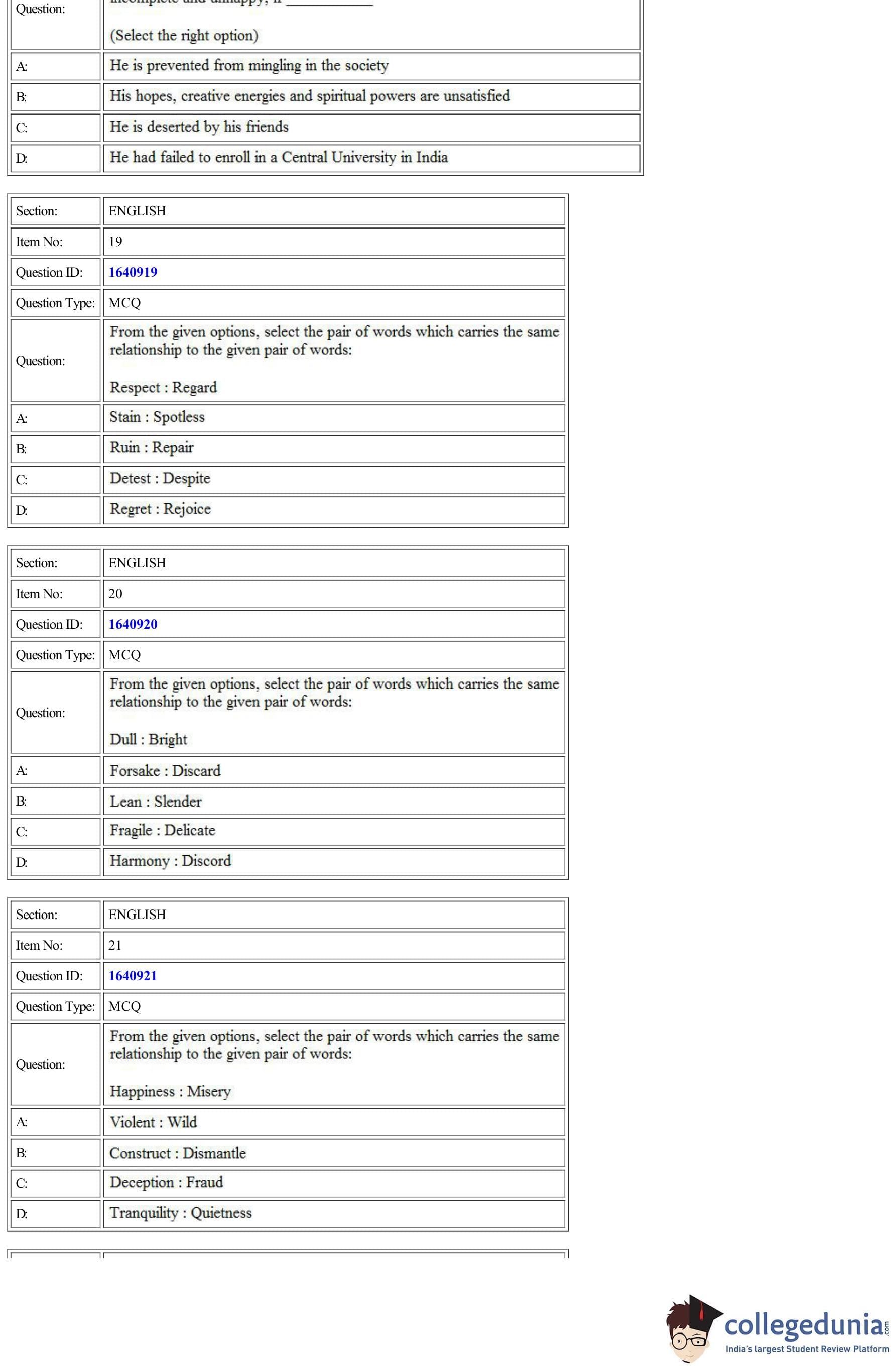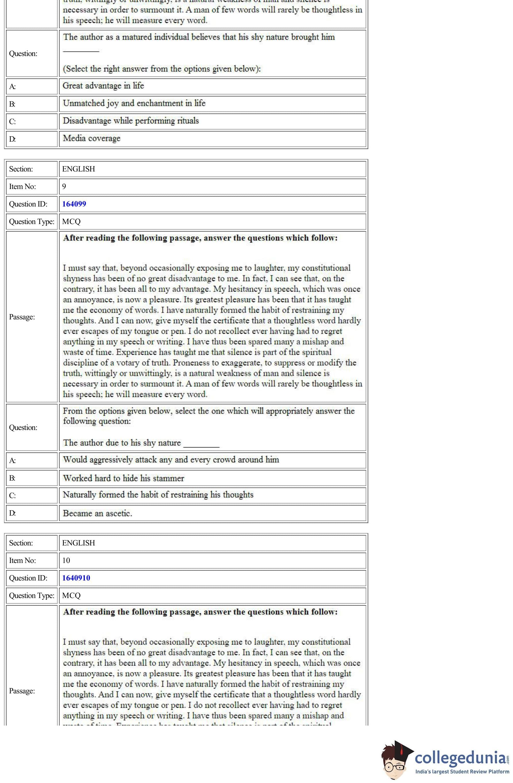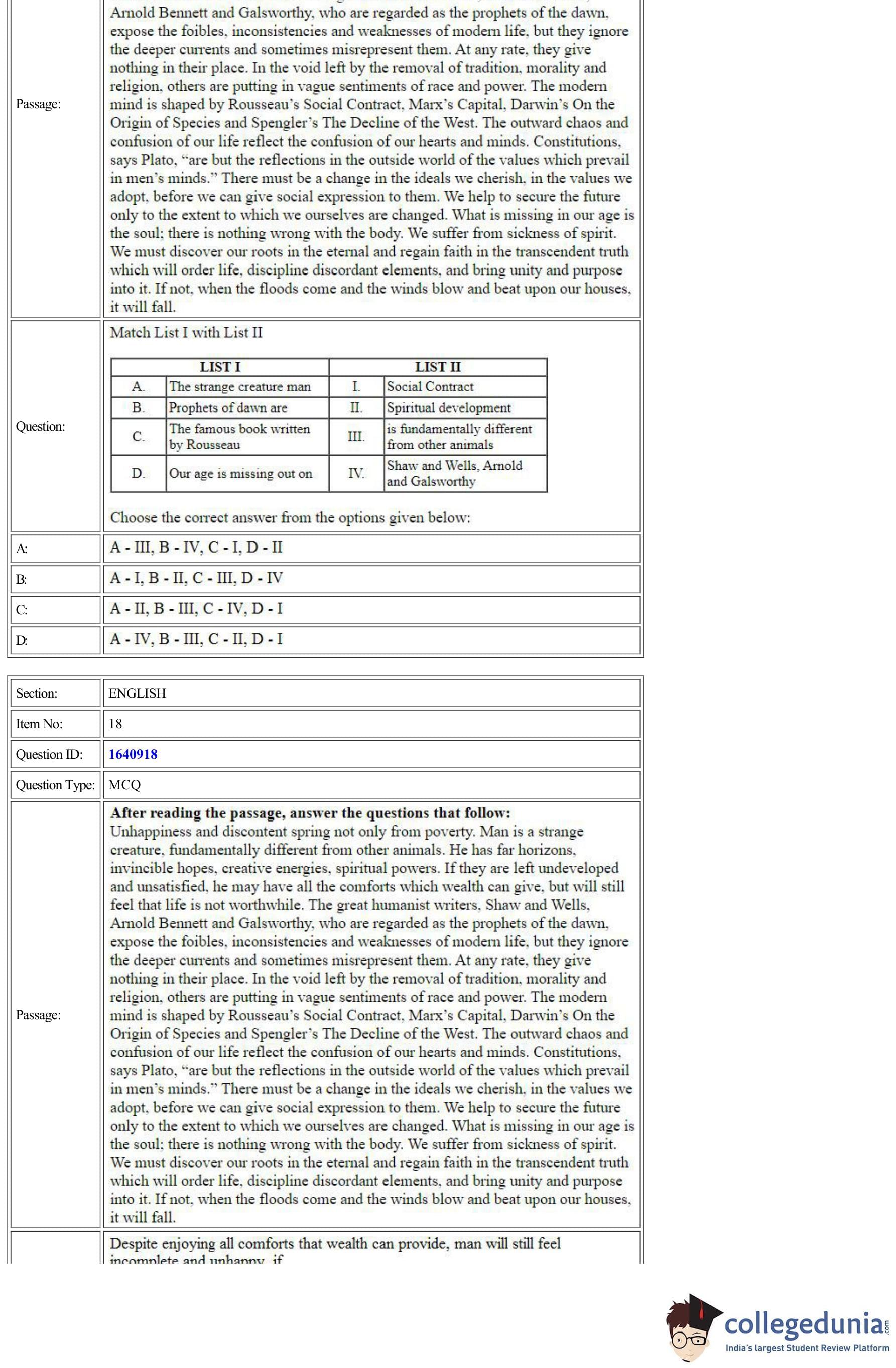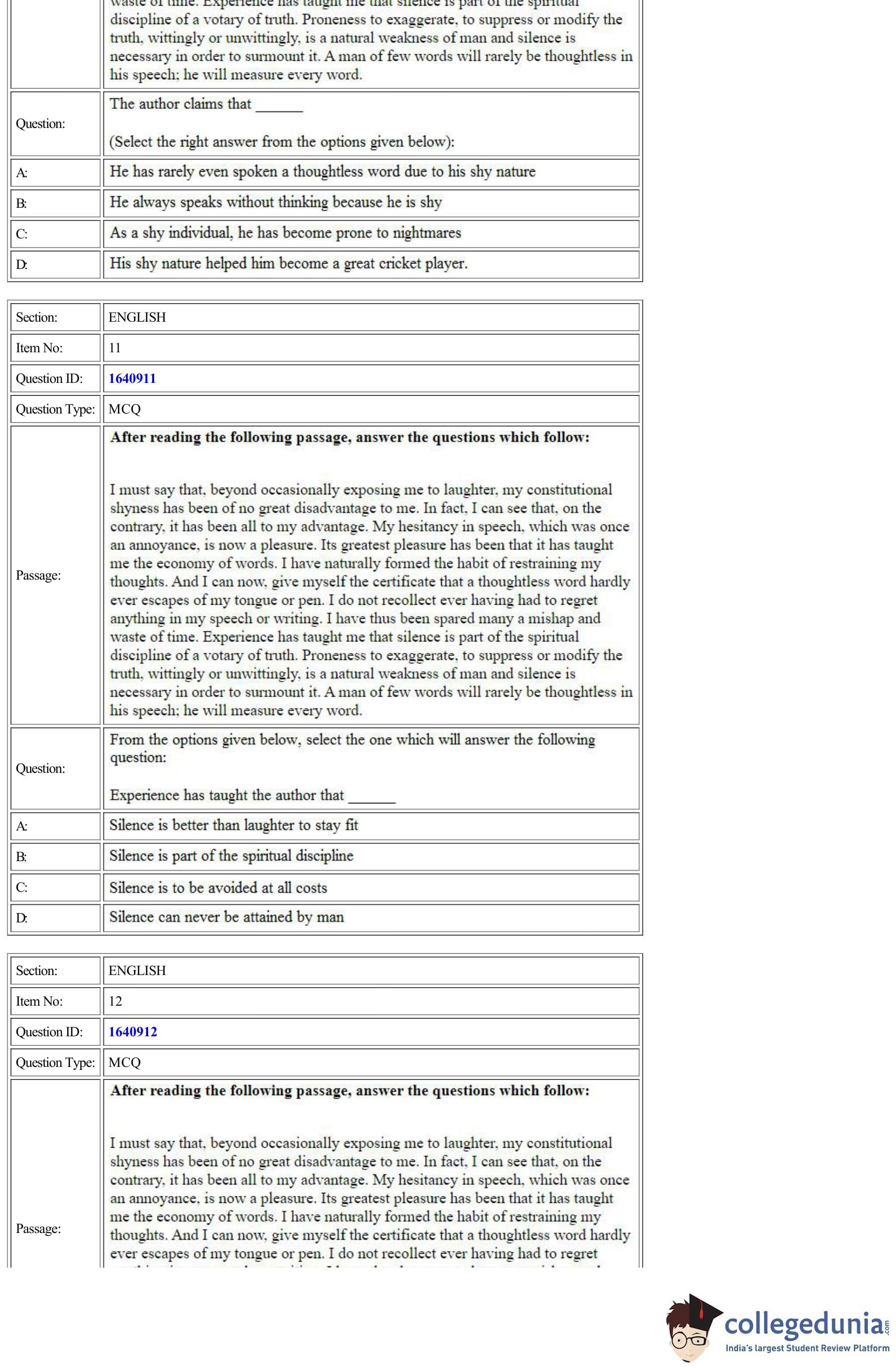 CUET English Question Paper 2022 is available for download. CUET 2022 English paper was conducted by National Testing Agency (NTA) on September 16, 2022 in Shift 1. The question paper comprised a total of 50 questions.