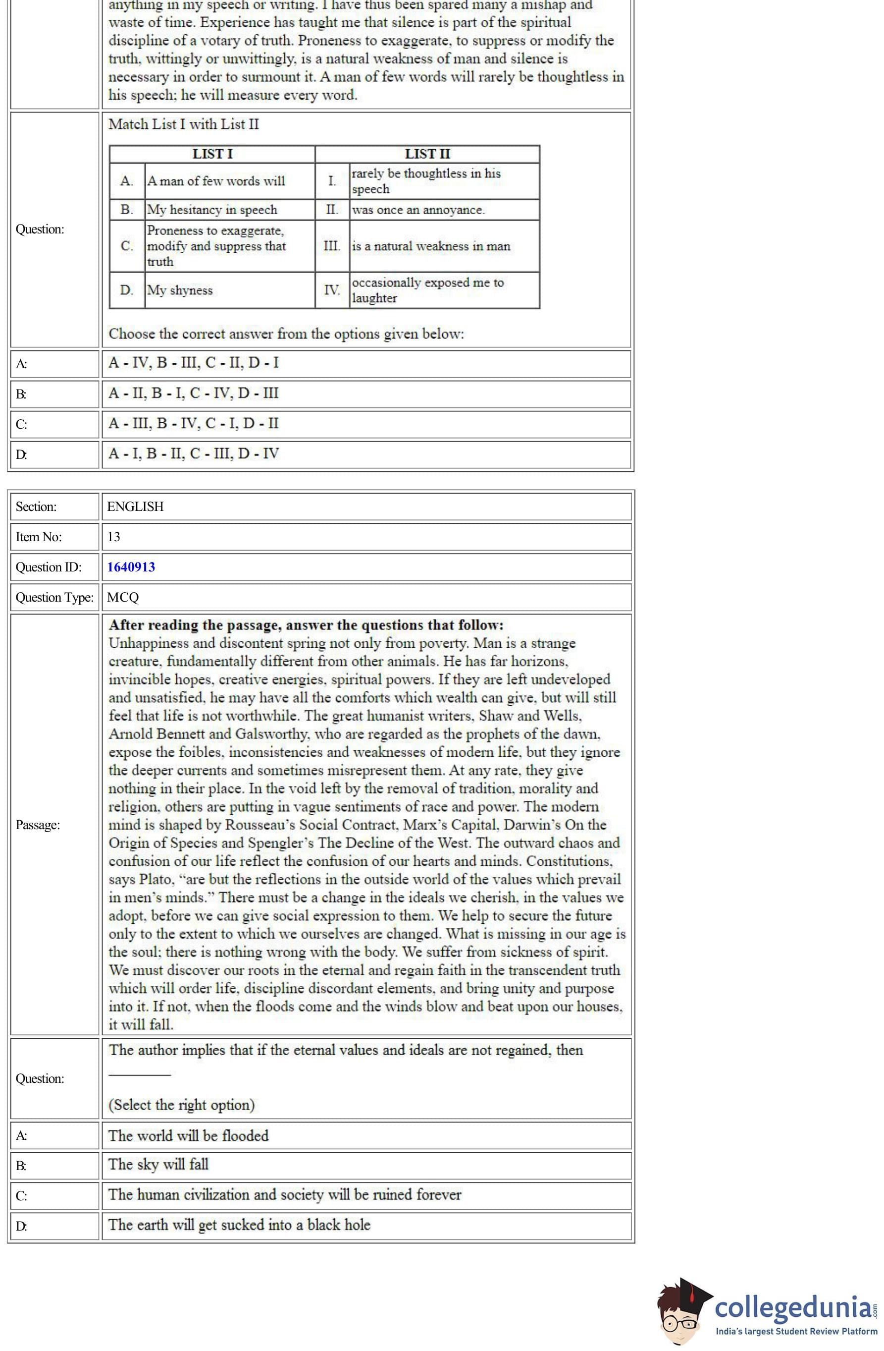 | CUET English Question Paper PDF | CUET English Answer Key PDF | CUET English Solutions PDF |