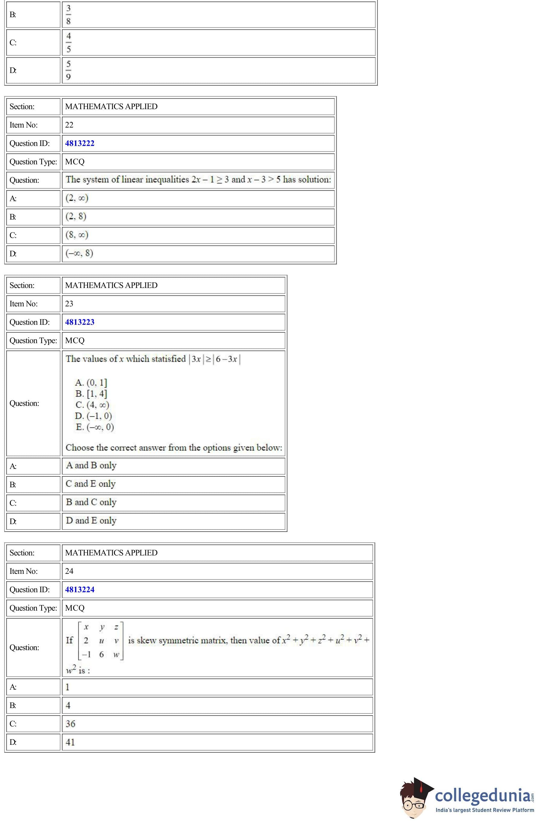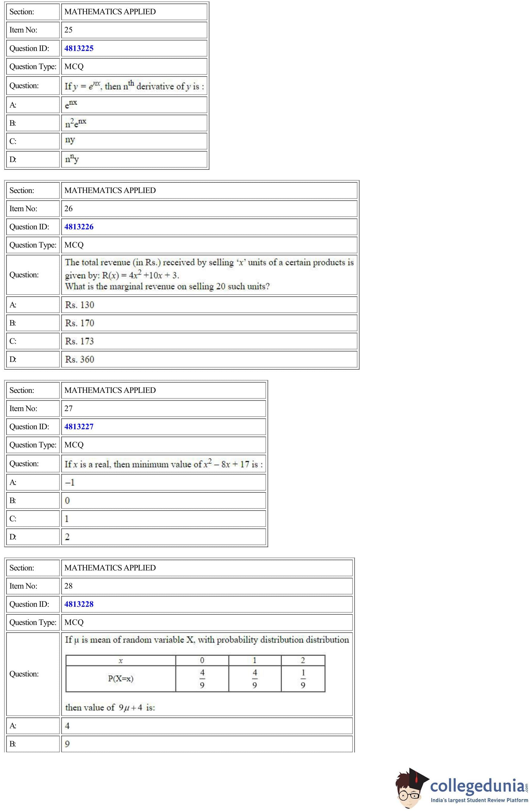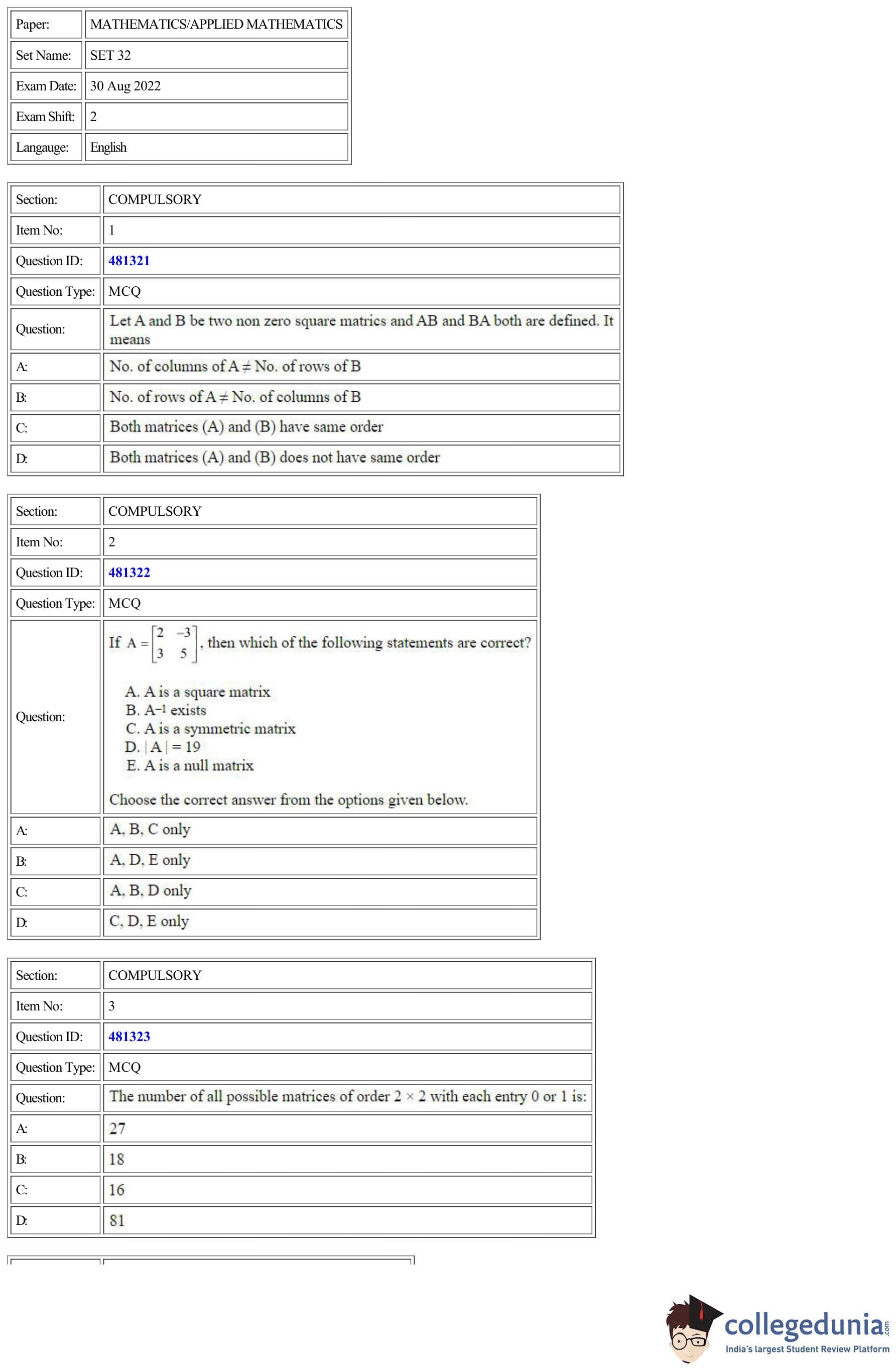 CUET Mathematics Applied Mathematics Question Paper 2022 is available for download. CUET 2022 Mathematics Applied Mathematics paper was conducted by National Testing Agency (NTA) on August 30, 2022 in Shift 2. The question paper comprised a total of 85 questions.