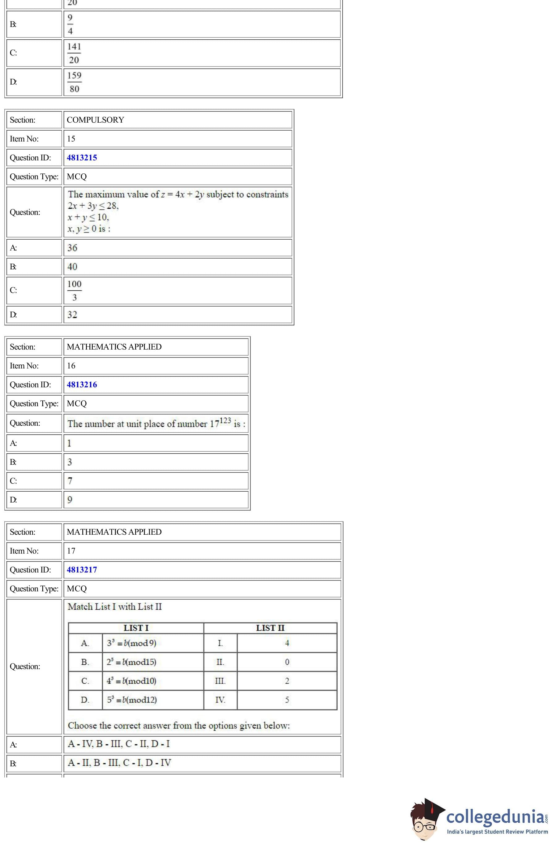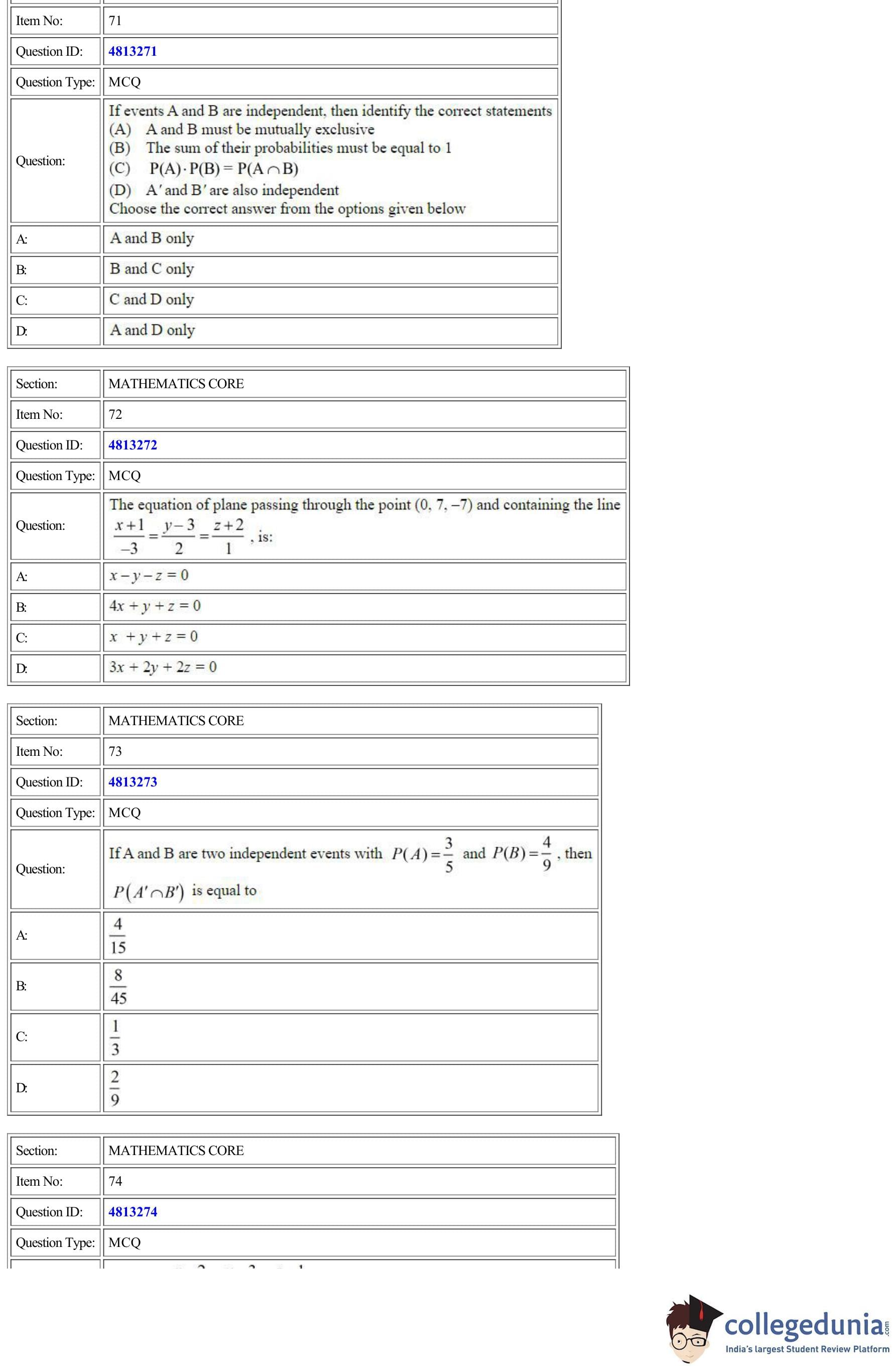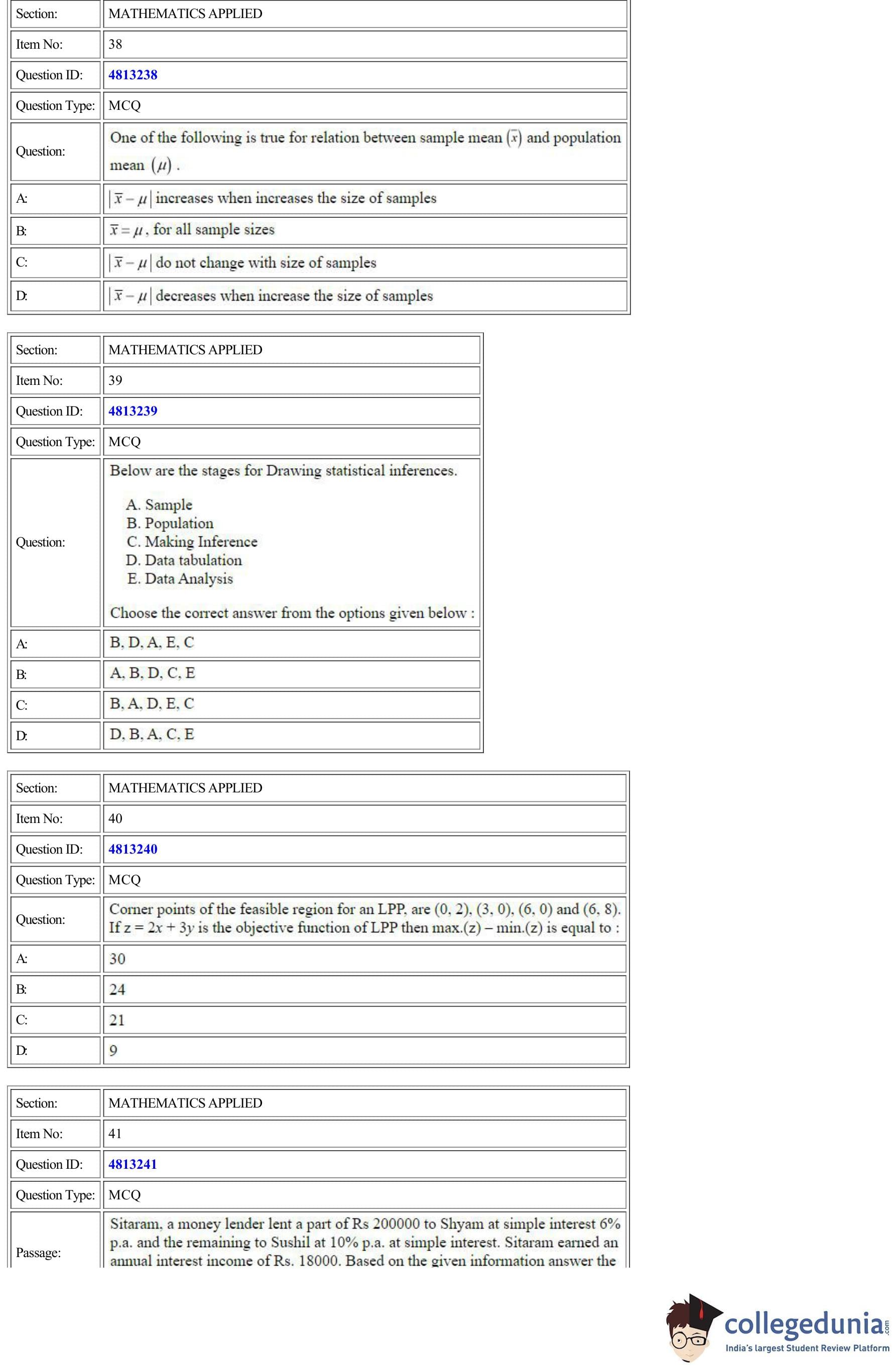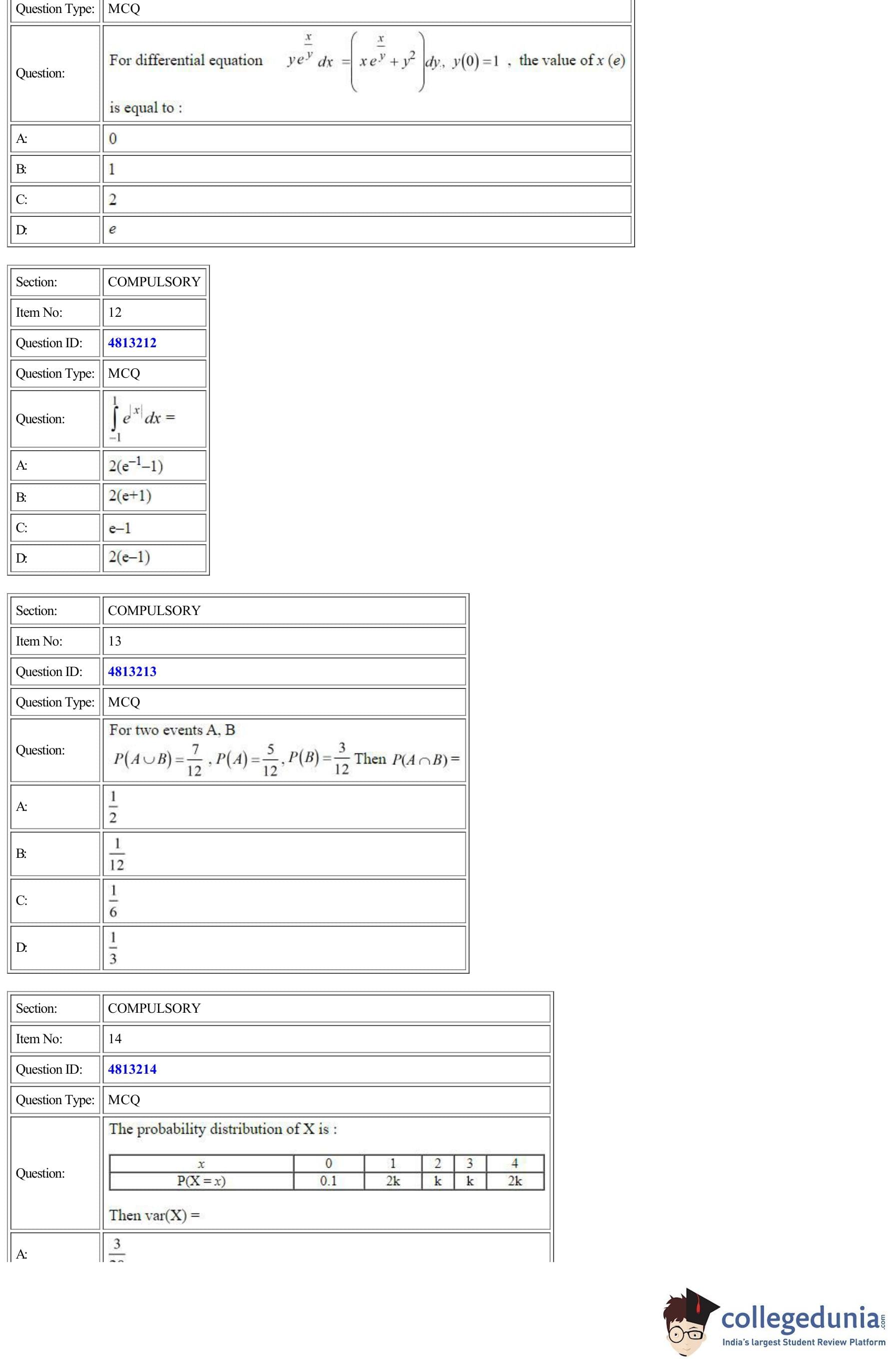 CUET Mathematics Applied Mathematics Question Paper 2022 is available for download. CUET 2022 Mathematics Applied Mathematics paper was conducted by National Testing Agency (NTA) on August 30, 2022 in Shift 2. The question paper comprised a total of 85 questions.