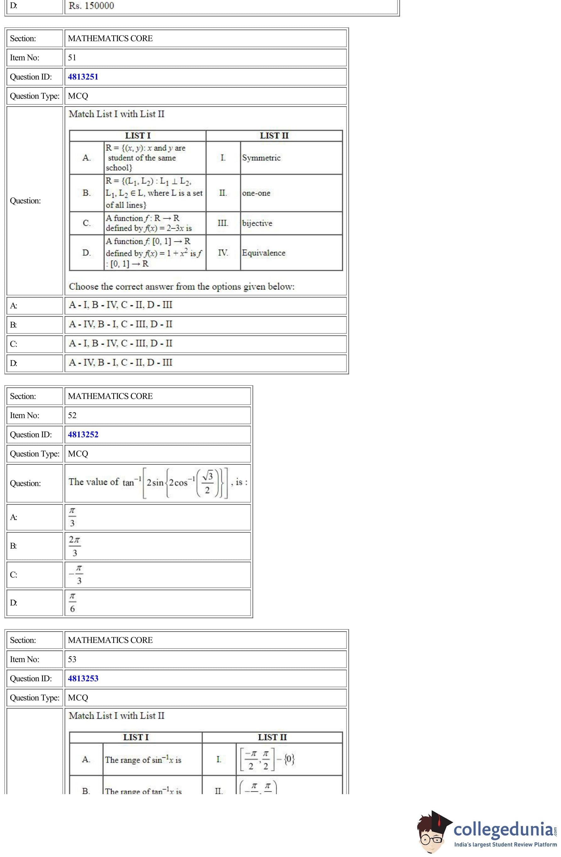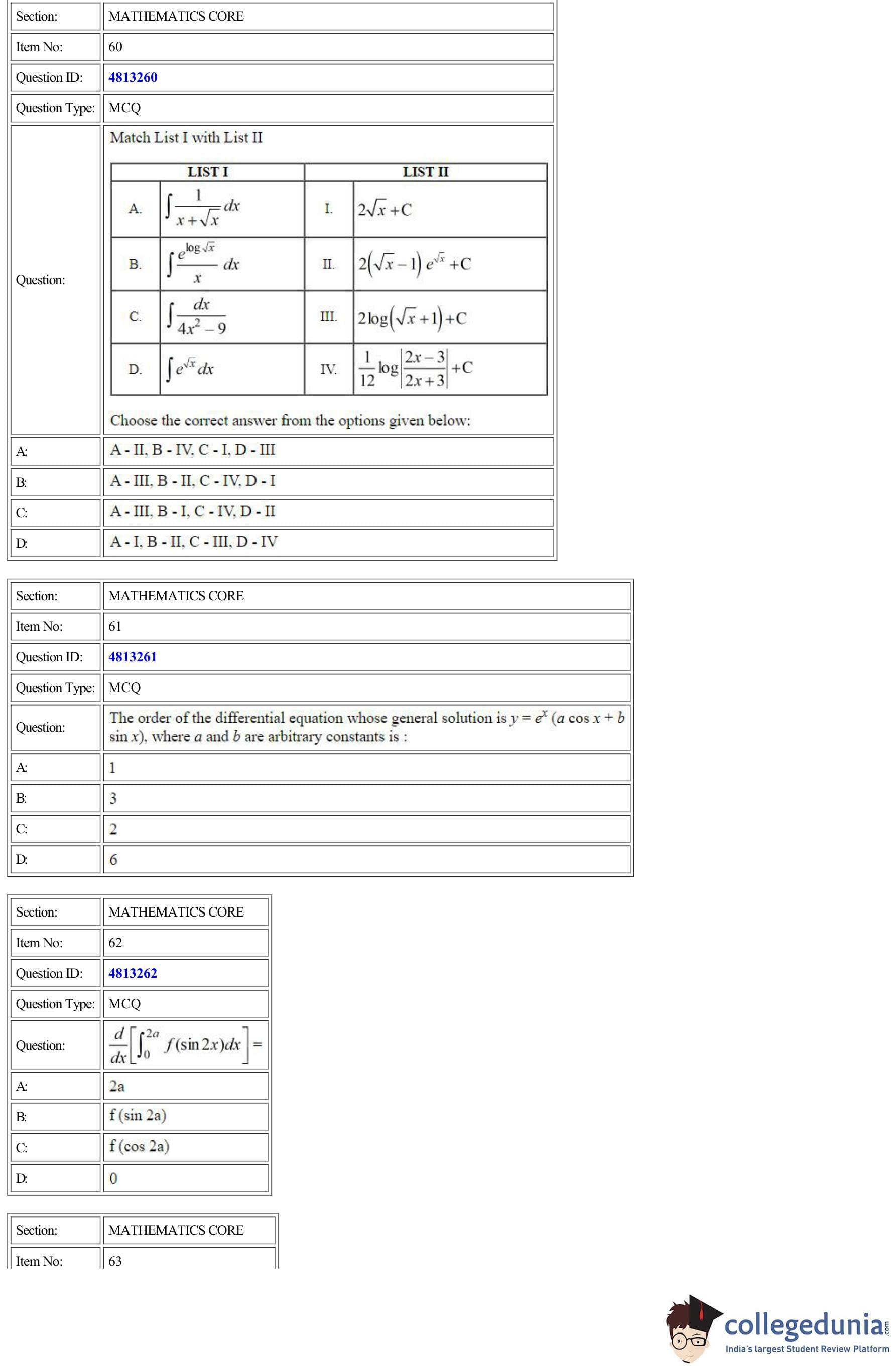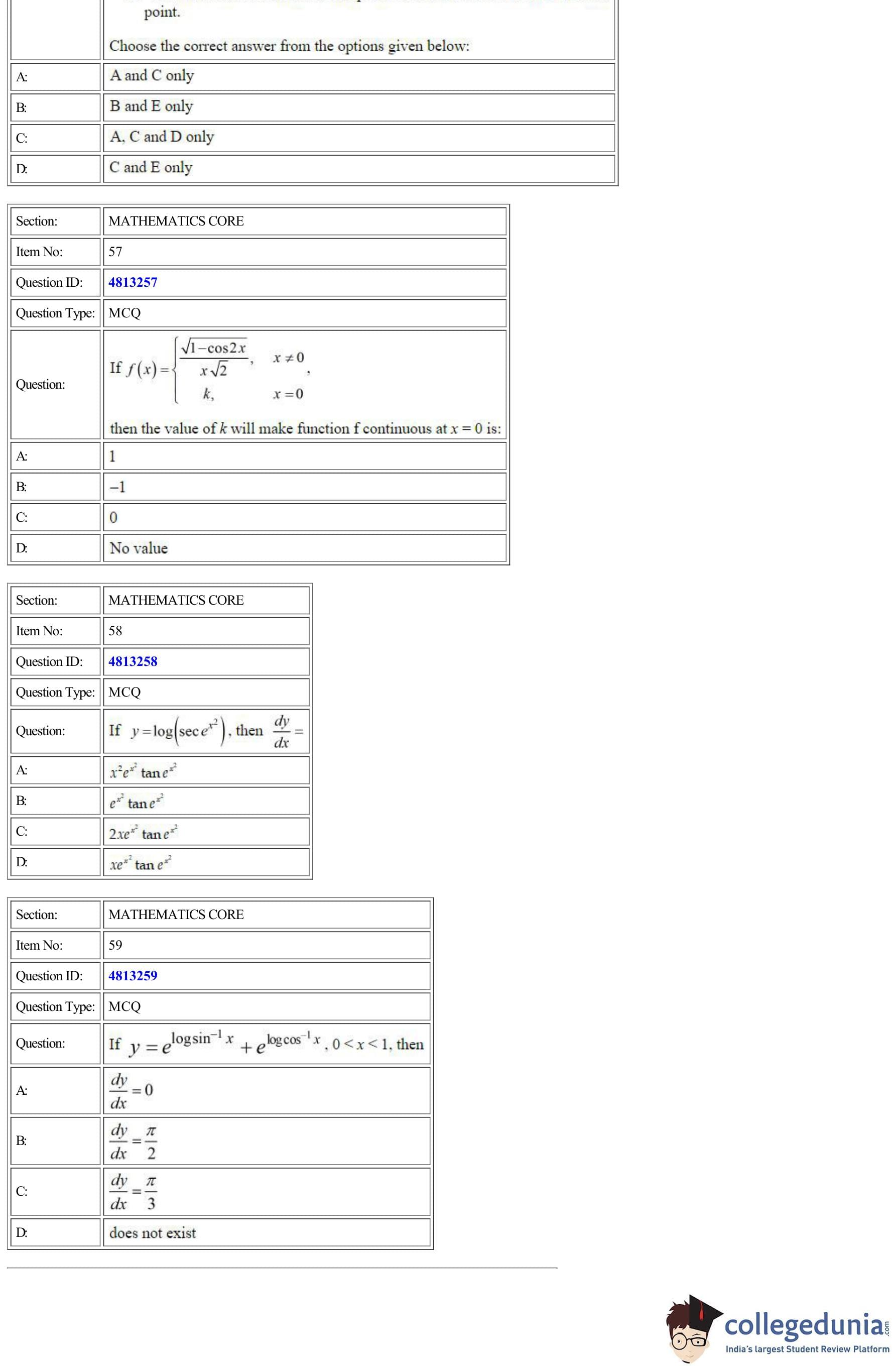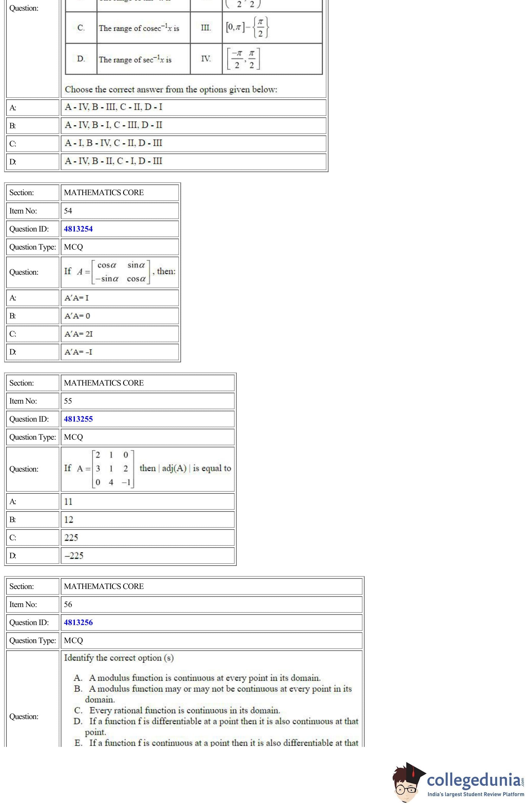 | CUET Mathematics Question Paper PDF | CUET Mathematics Answer Key PDF |