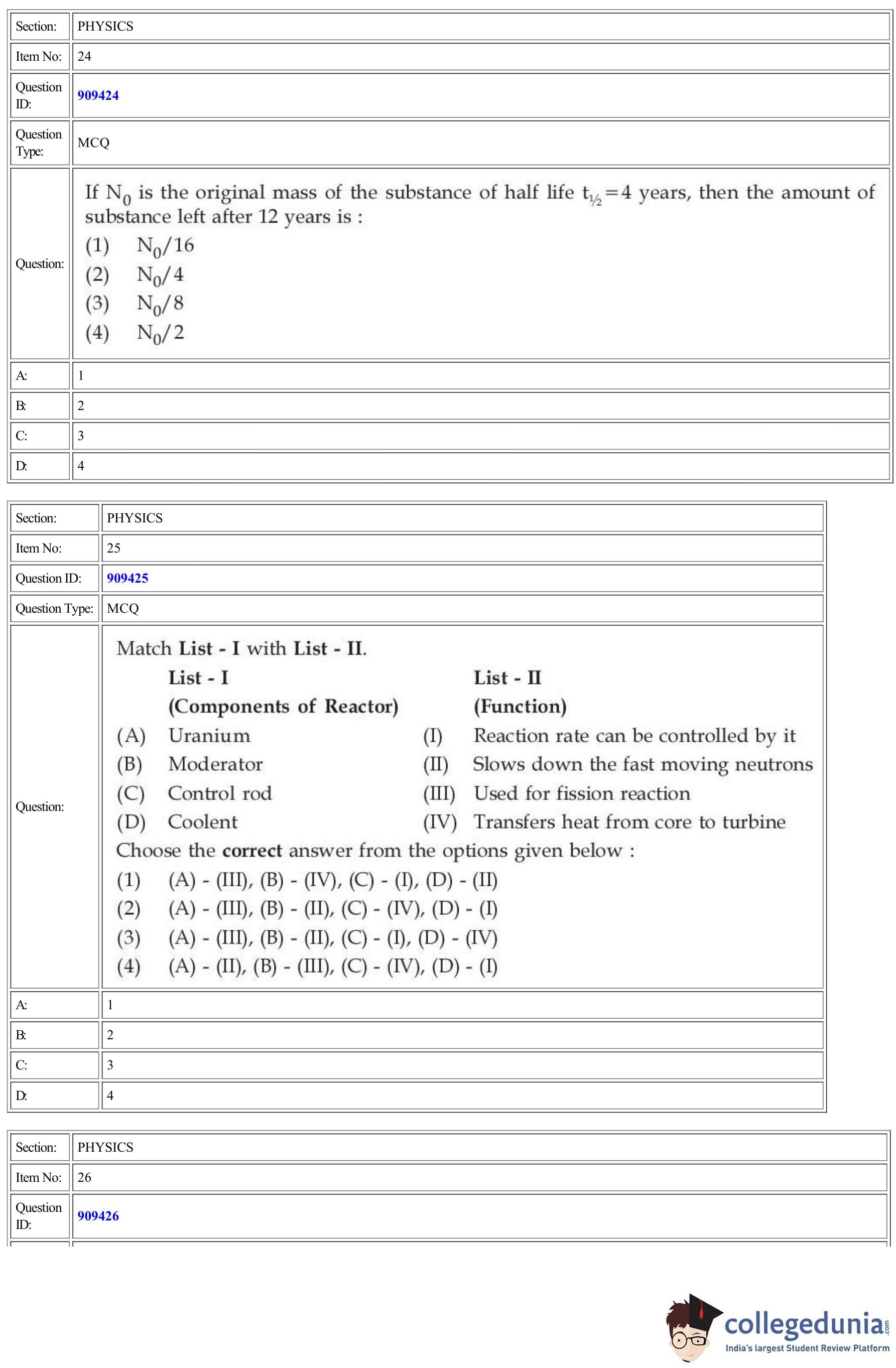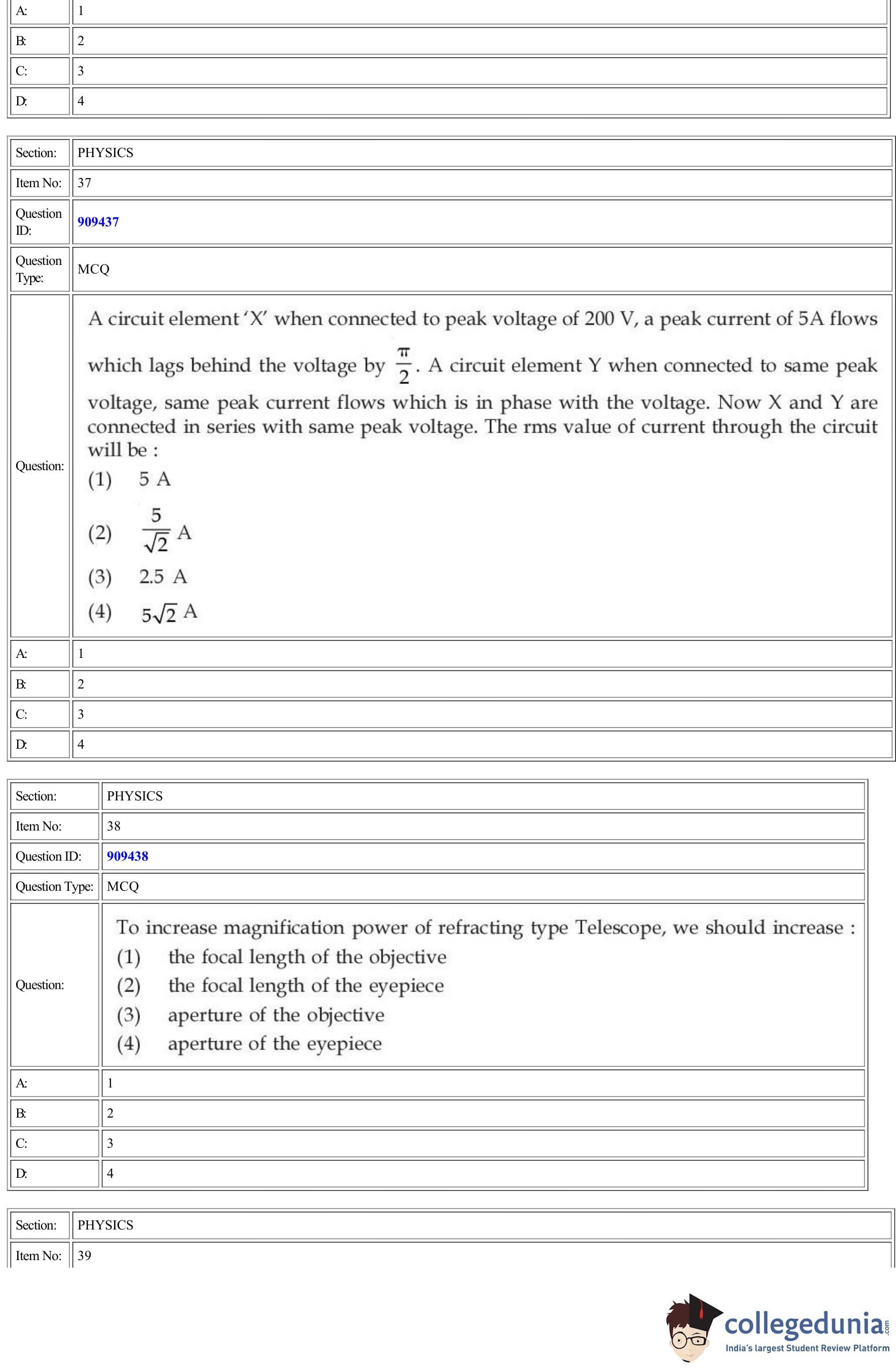 | CUET Physics Question Paper PDF | CUET Physics Answer Key PDF | CUET Physics Solutions PDF |