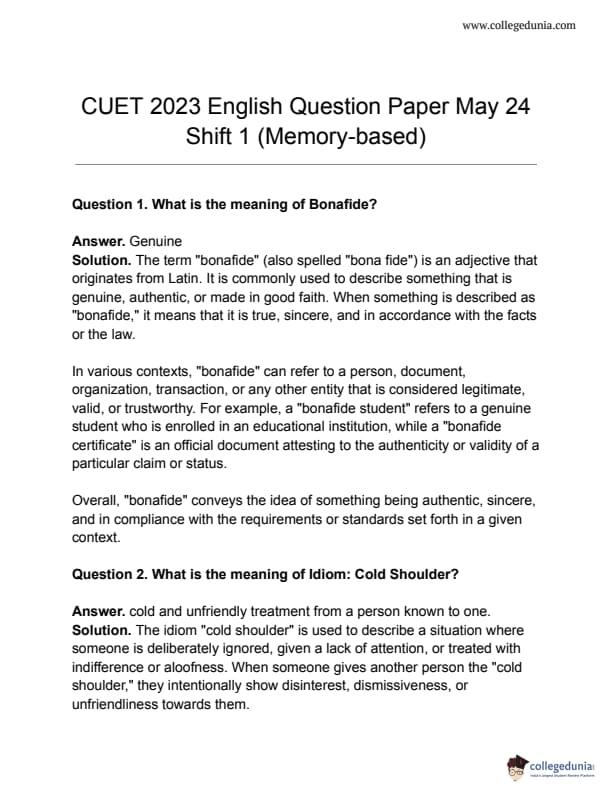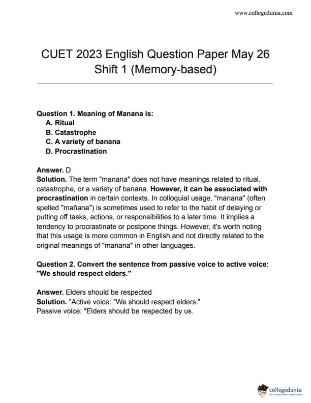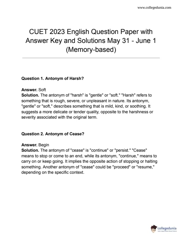 CUET 2023 English Answer Key and Question Paper with Solutions PDF