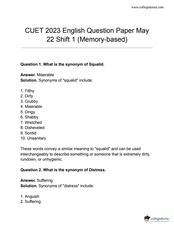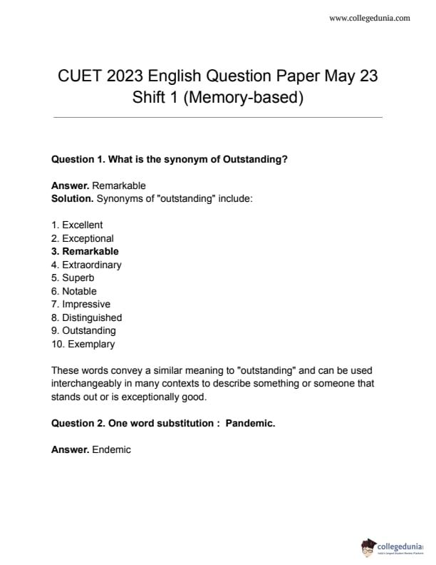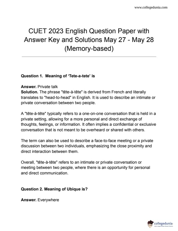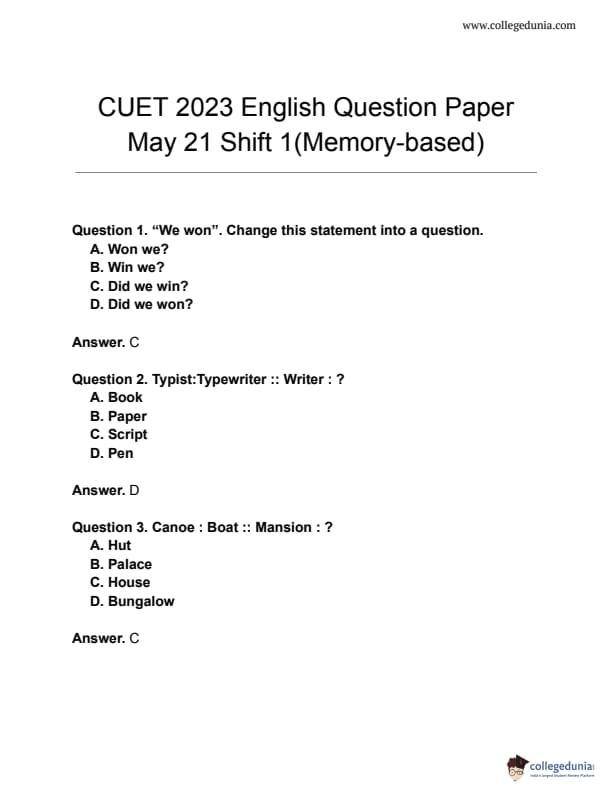 | CUET 2023 English Question Paper with Answer Key | Check Solution |