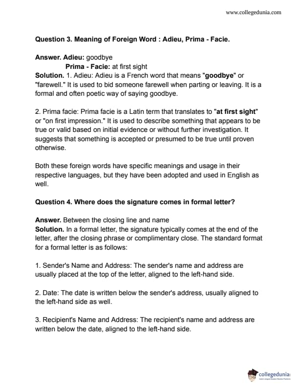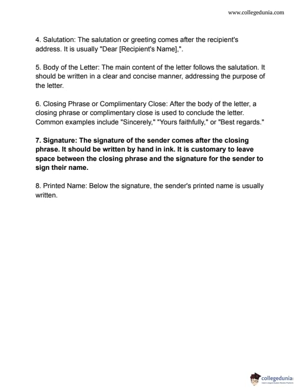 Informal Letter Structure: Informal letters are used for personal communication and are less structured compared to formal letters. They omit formal elements like invoices. Quick Tip: Informal letters are for personal communication and typically omit formal elements like invoices or subject lines.