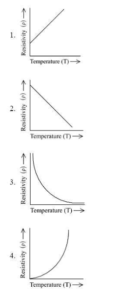 The resistivity of a semiconductor decreases with an increase in temperature. As the temperature increases, more charge carriers are excited, leading to a decrease in resistivity. Therefore, the graph showing a downward curve as temperature increases best represents the behavior of resistivity in a typical semiconductor.