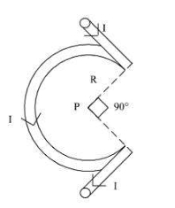 The given circuit involves two current-carrying conductors forming a network with a point \(P\) located near them. The magnetic field at \(P\) due to each segment of the circuit can be calculated using Ampère's law and the Biot-Savart law. The total magnetic field at point \(P\) is a summation of the contributions from each segment. The correct expression for the magnetic field at \(P\) is given by: \[ |B| = \frac{\mu_0 I}{4\pi R} \left(\frac{3}{2} \pi \right) \] Quick Tip: For calculating magnetic fields from current-carrying conductors, use the Biot-Savart law and consider the contributions from each section of the wire.