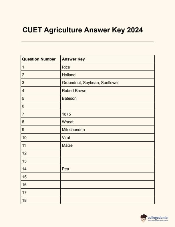 CUET Agriculture Answer Key 2024 PDF Download