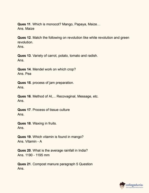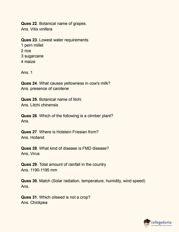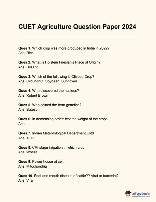 | CUET Agriculture Previous Year Question Papers | CUET Question Paper 2023 |