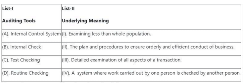 - Routine Checking examines all transactions in detail → (III) Quick Tip: Matching lists in auditing requires understanding of definitions carefully.