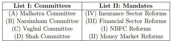 - NABARD → Agricultural & rural finance → (III)