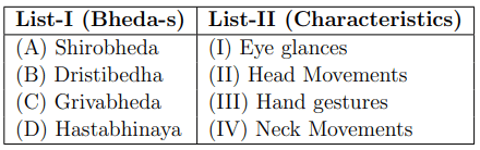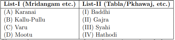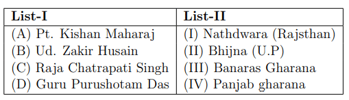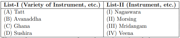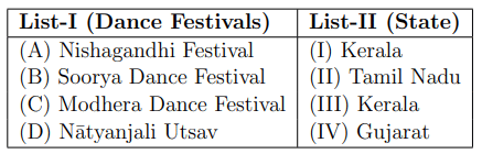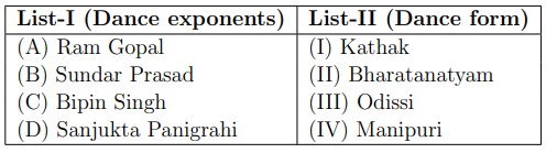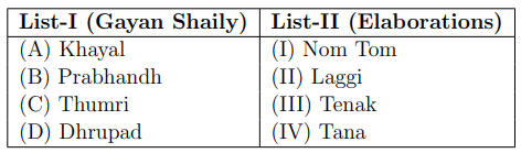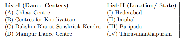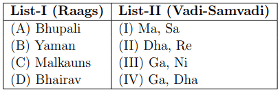 The correct set of matches is A-II, B-III, C-IV, D-I.