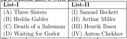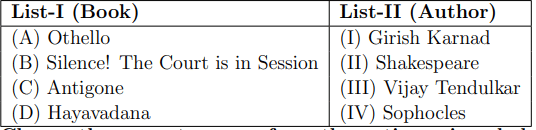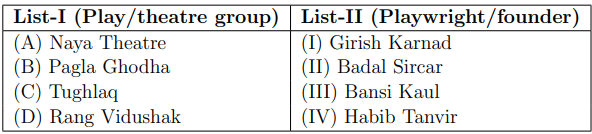 Quick Tip: Familiarize yourself with the bibliography of major modern Indian playwrights like Girish Karnad, Vijay Tendulkar, Badal Sircar, and Mohan Rakesh, as questions often ask to identify their collections of work.