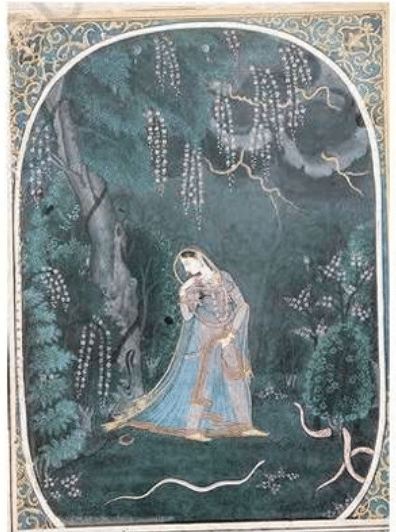 As established, the painting shows an Abhisarika Nayika. The central theme and defining action of this Nayika is her journey to meet her beloved.