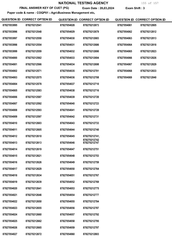 | CUET PG Agri-Business Management Question Paper 2024 with Answer Key | Check Solutions |