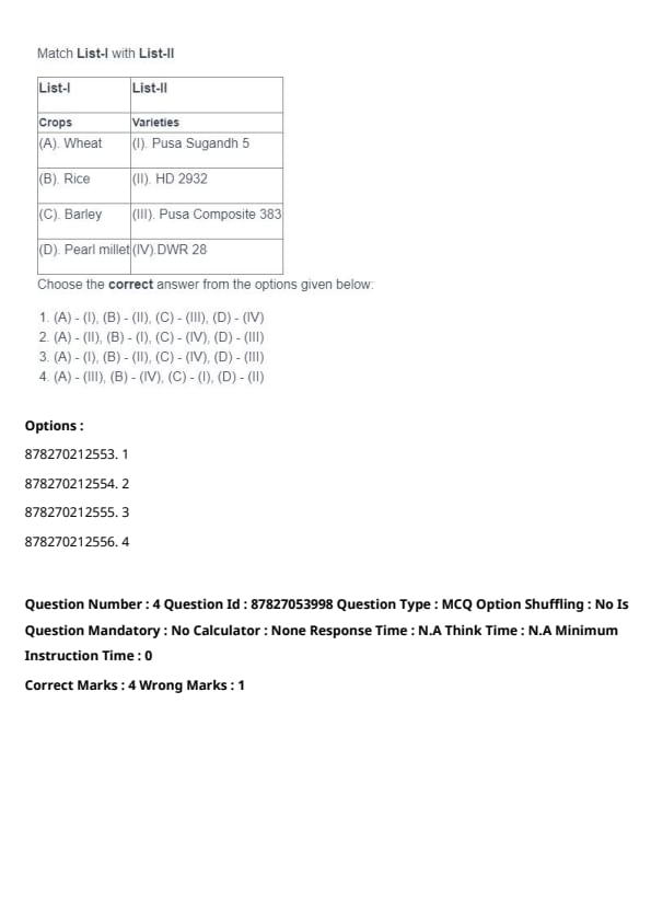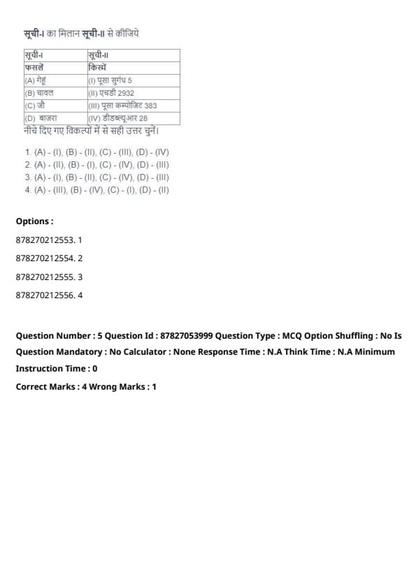 | (A) Wheat | (I) Pusa Sugandh 5 |