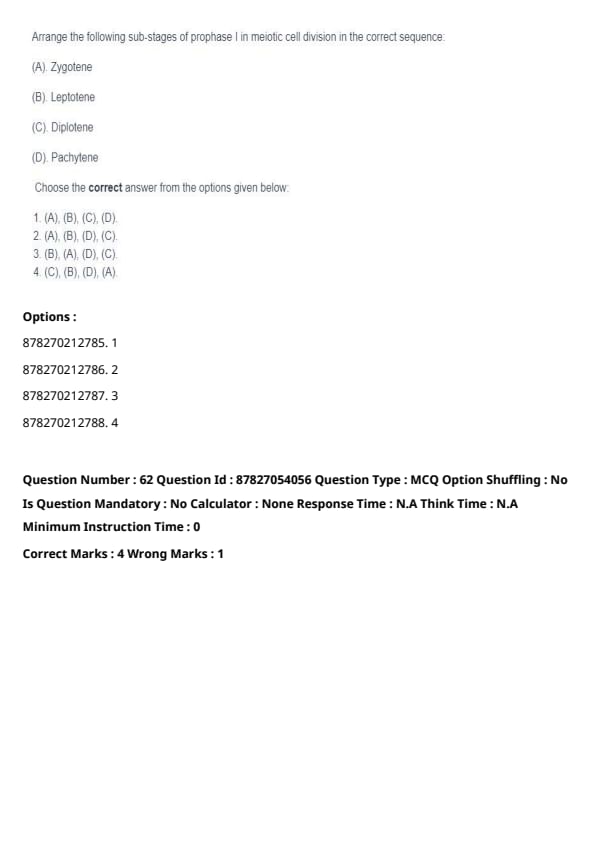 Arrange the following sub-stages of prophase I in meiotic cell division in the correct sequence: