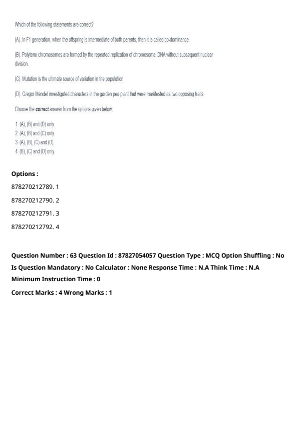 Statement (A): Incorrect. Co-dominance results in both parental traits being expressed, not an intermediate form.