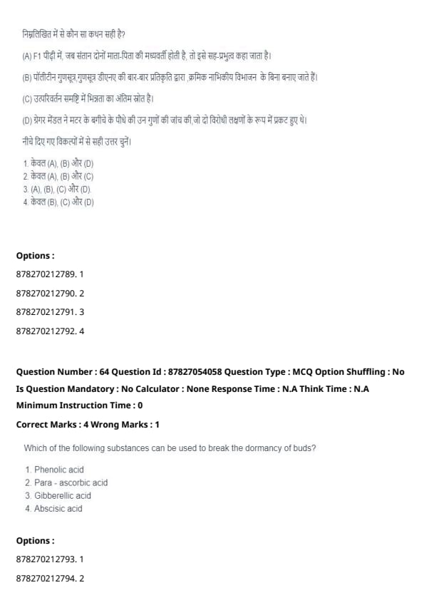 Statement (D): Correct. Mendel's experiments on garden peas revealed traits as two opposing forms (dominant and recessive).