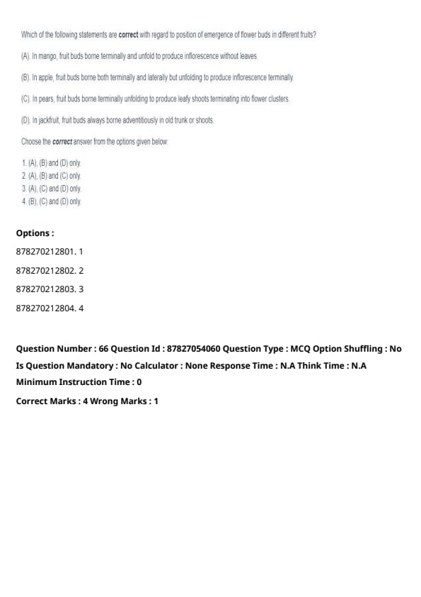(A) Mango: Fruit buds are terminal, producing inflorescence without leaves.