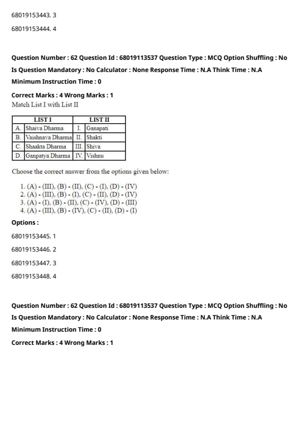 - Vaishnava Dharma is associated with Vishnu (B - IV).