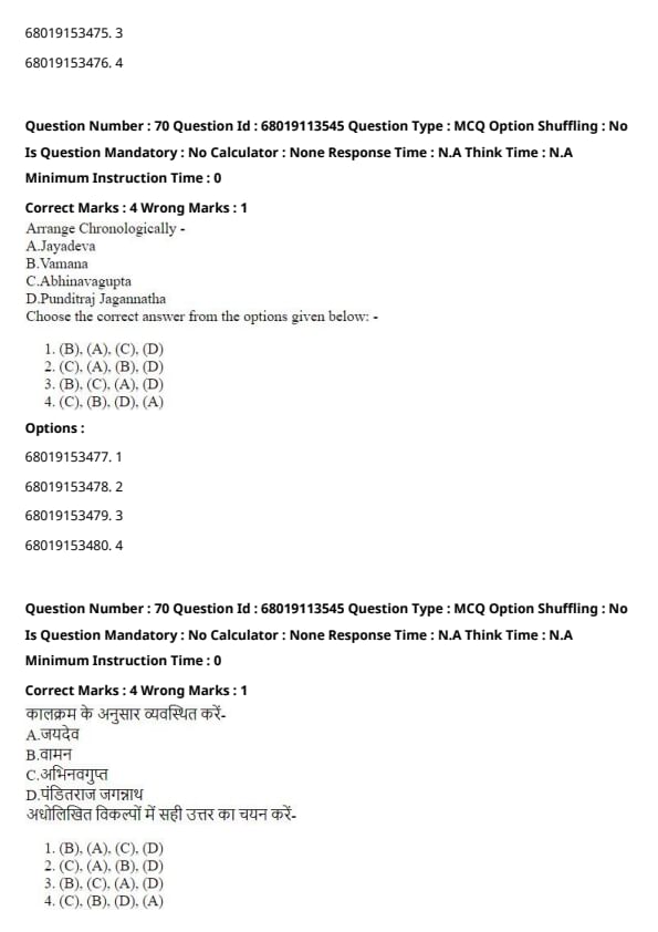 - Vamana → Abhinavagupta → Jayadeva → Punditraj Jagannatha. Quick Tip: These figures contributed to various fields like literature, poetics, and philosophy.
