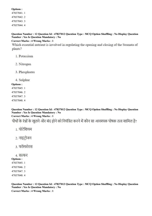 Step 3: Therefore, potassium plays a key role in regulating the opening and closing of stomata in plants. Quick Tip: Adequate potassium nutrition improves water use efficiency by regulating stomatal activity in plants.