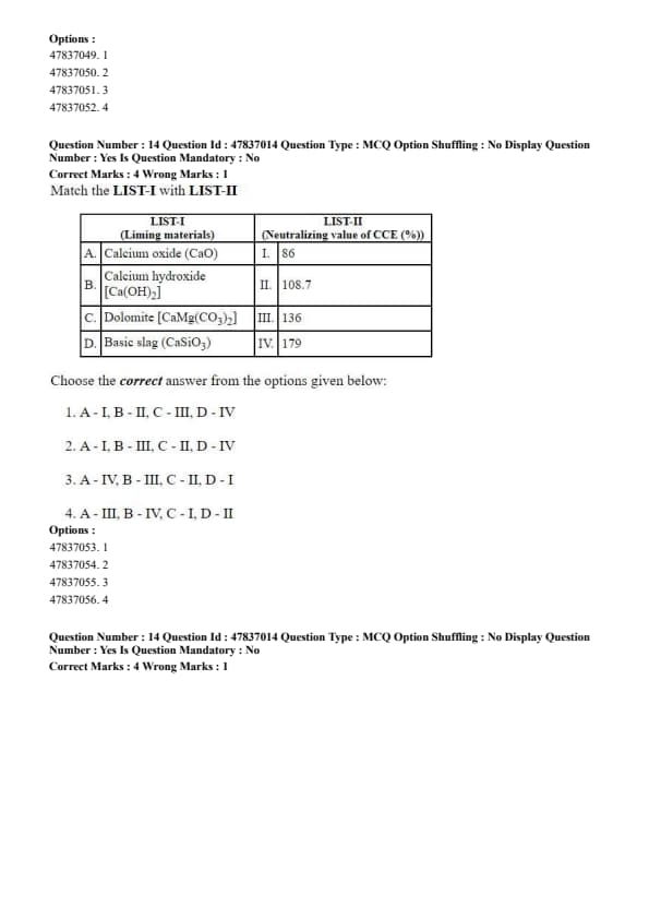 Step 4: Basic slag has the lowest neutralizing value among the given options (86%). Quick Tip: Higher the calcium content and reactivity of a liming material, higher is its calcium carbonate equivalent (CCE).