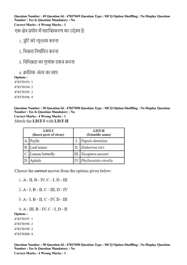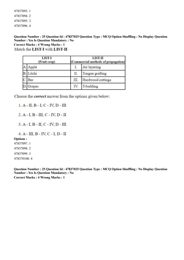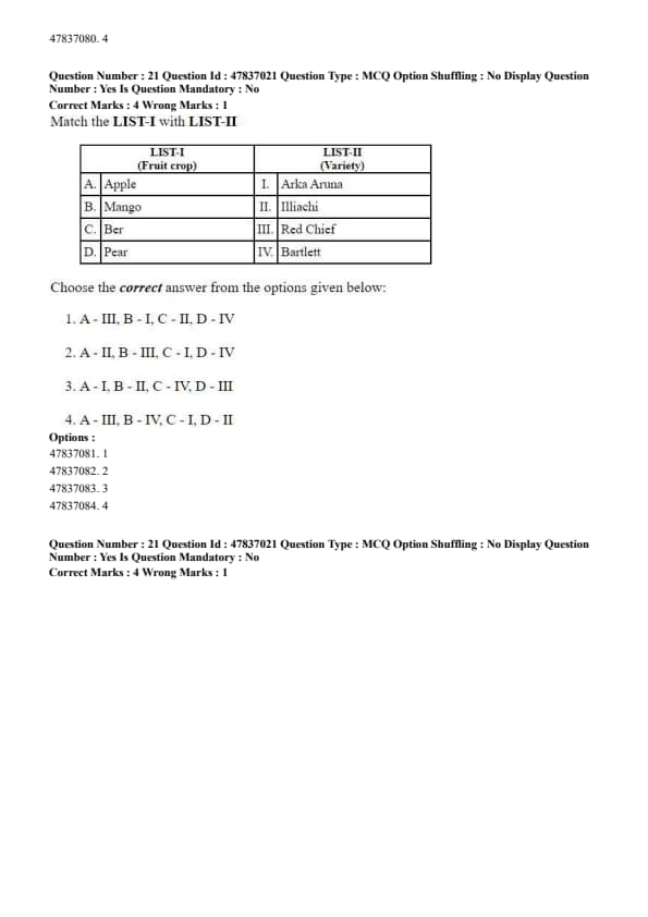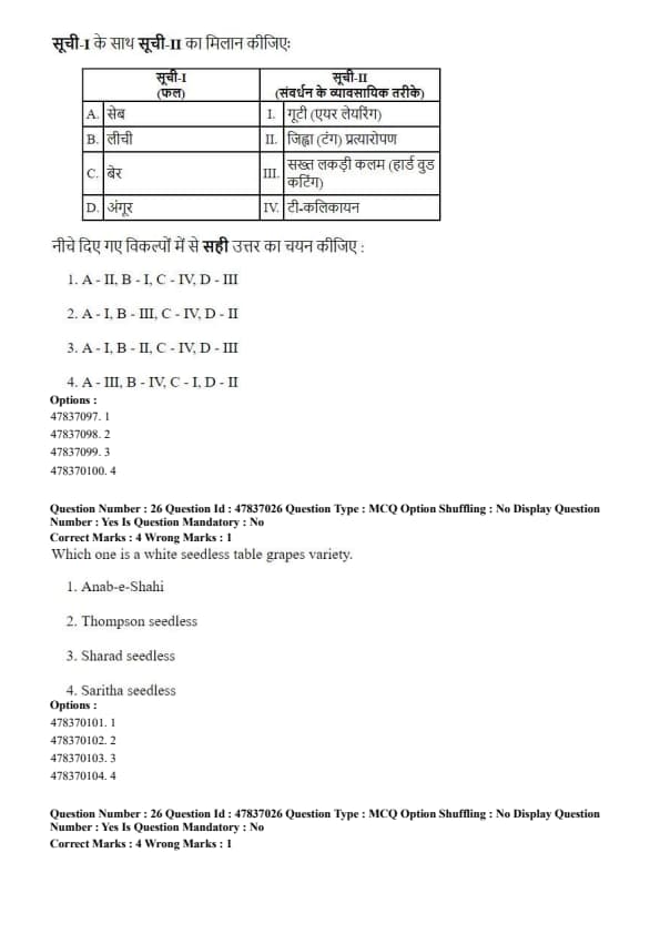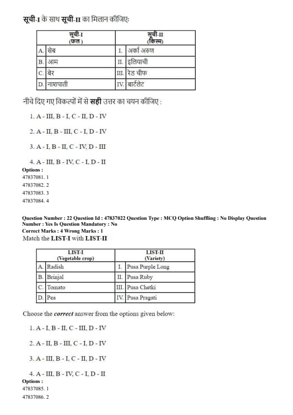LIST-I (Fruit crop) \hfill LIST-II (Variety)