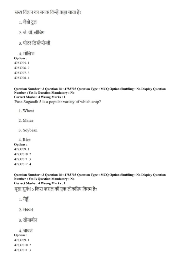 Step 3: Therefore, Pusa Sugandh 5 is a variety of rice and not related to wheat, maize, or soybean. Quick Tip: Pusa Sugandh series varieties are aromatic rice types developed by IARI and are known for their basmati-like quality and good yield.