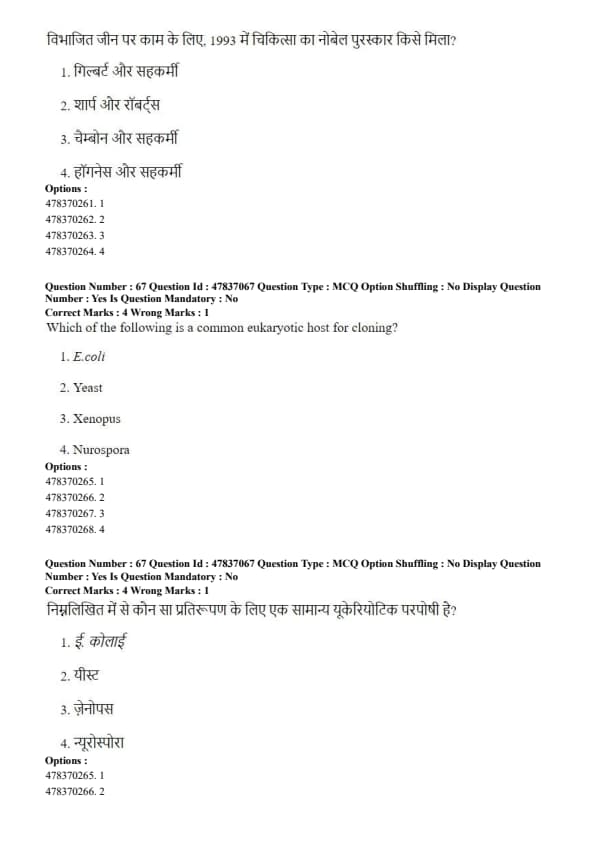 Step 4: \textit{Xenopus and \textit{Neurospora are eukaryotes but are not commonly used as standard cloning hosts. Quick Tip: Yeast combines the advantages of easy genetic manipulation with eukaryotic gene expression systems.