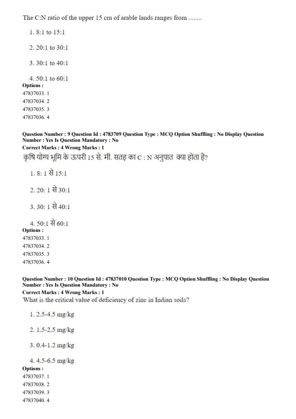 Step 3: Hence, the C:N ratio of the upper 15 cm of arable land generally lies between 8:1 and 15:1. Quick Tip: Lower C:N ratios indicate well-decomposed organic matter and greater nitrogen availability to crops.