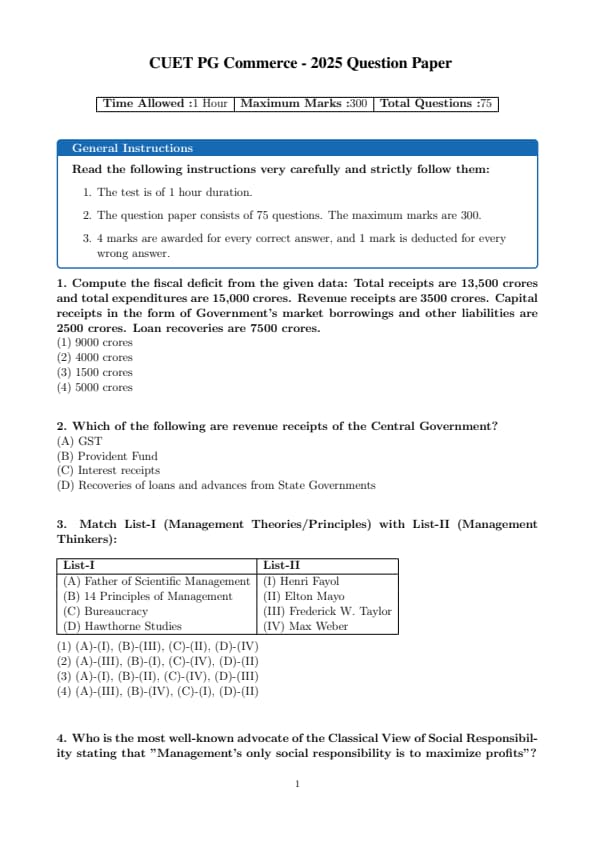 CUET PG Commerce 2025 Question Paper with Solutions PDF