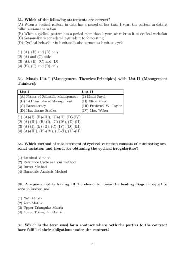 Match List-I (Management Theories/Principles) with List-II (Management Thinkers):