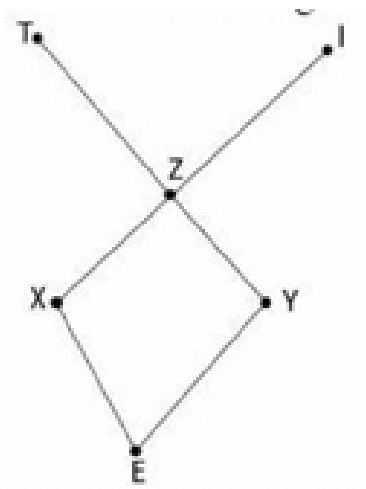 Find the least upper bound and greatest lower bound of \( S = \{X, Y, Z\} \) if they exist, of the poset whose Hasse diagram is shown below: