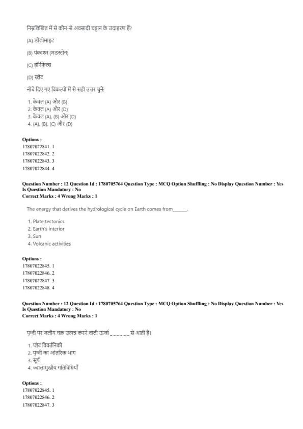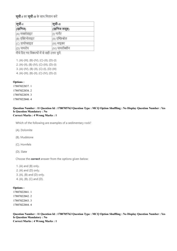 Step 5: Therefore, only dolomite and mudstone are sedimentary rocks. Quick Tip: Sedimentary rocks form by deposition, compaction, or precipitation. Hornfels and slate are metamorphic, not sedimentary.