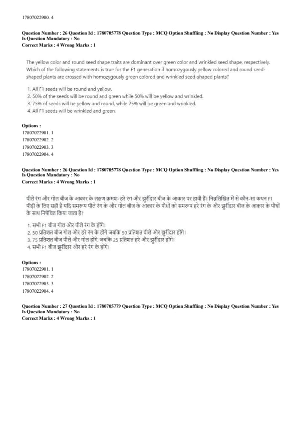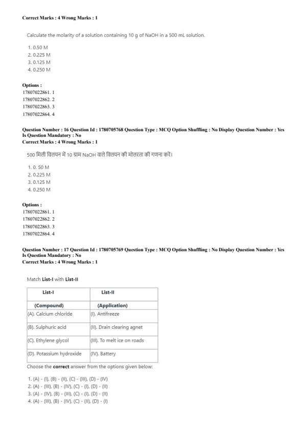 Candidates must attempt 75 questions within 60 minutes, totaling 300 marks. Each correct answer awards 4 marks, while 1 mark is deducted for every incorrect response.