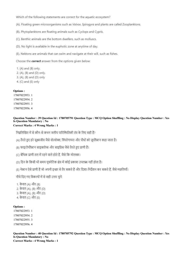 Step 5: Hence, rooted vegetation is supported in the littoral zone. Quick Tip: Lake zones: Littoral \(\rightarrow\) shallow, light reaches bottom, rooted plants present; Limnetic \(\rightarrow\) open surface water; Profundal \(\rightarrow\) deep, no light.