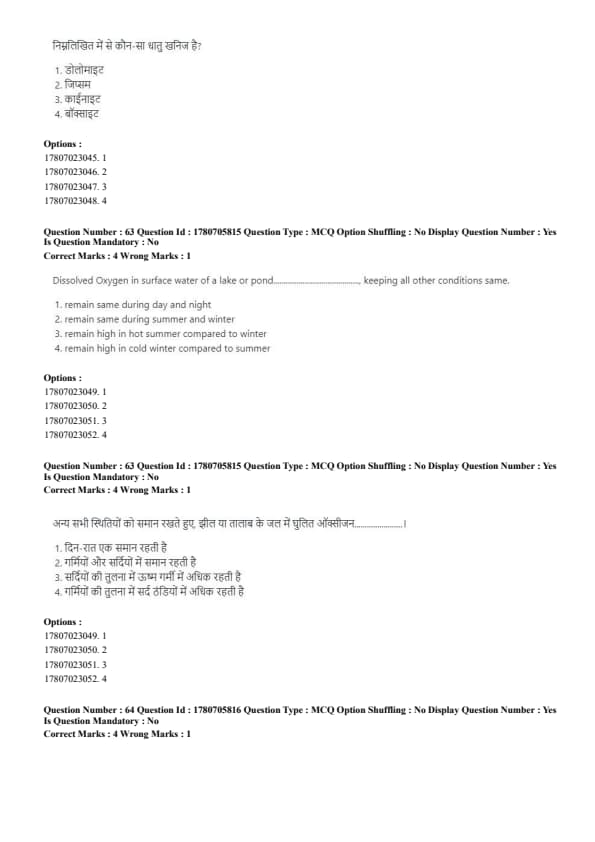 Step 4: Therefore, dissolved oxygen remains higher in cold winter compared to summer. Quick Tip: Cold water holds more dissolved gases than warm water. Hence, dissolved oxygen levels are higher in winter than in summer.