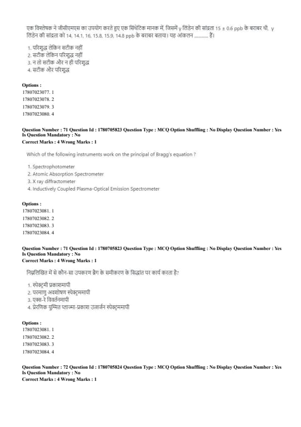 Step 4: The other instruments listed operate on absorption or emission principles, not diffraction. Quick Tip: Bragg’s law is exclusively associated with \textbf{X-ray diffraction (XRD)} and is used to study crystal structures.