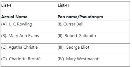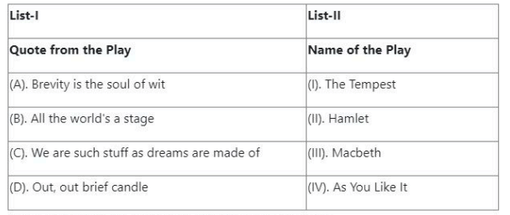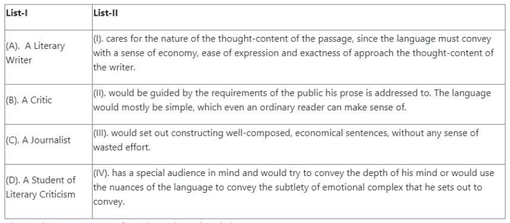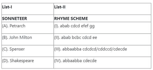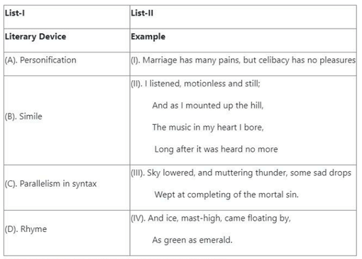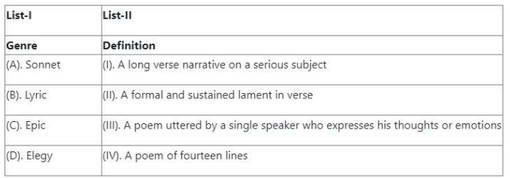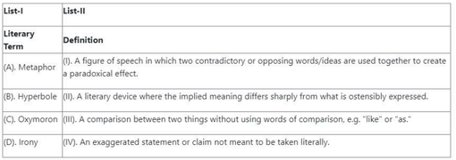 Match the literary term in List-I with its correct definition in List-II