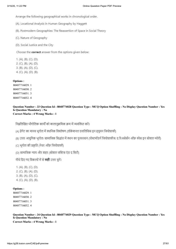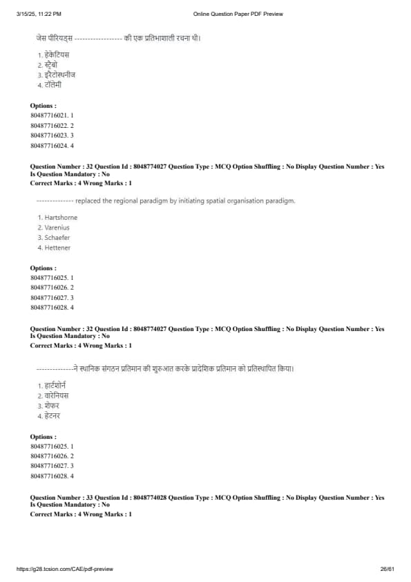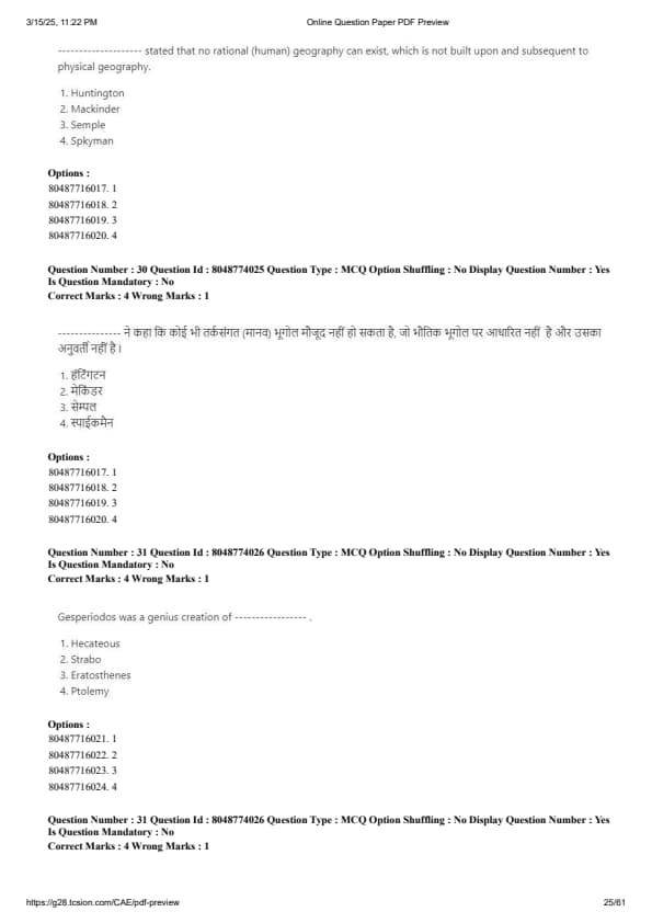 CUET PG Geography Question Paper 2025 PDF Download