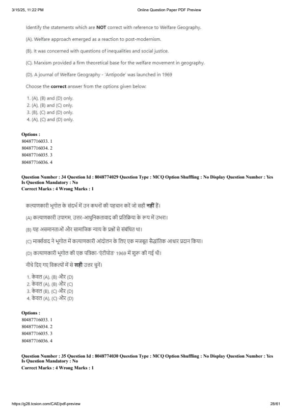 | CUET PG Geography Question Paper with Answer Key | Download | Check Solution |