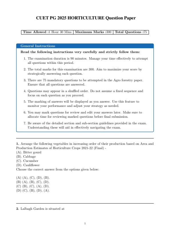 | CUET PG Horticulture Question Paper with Solutions PDF | Download PDF | Check Solutions |